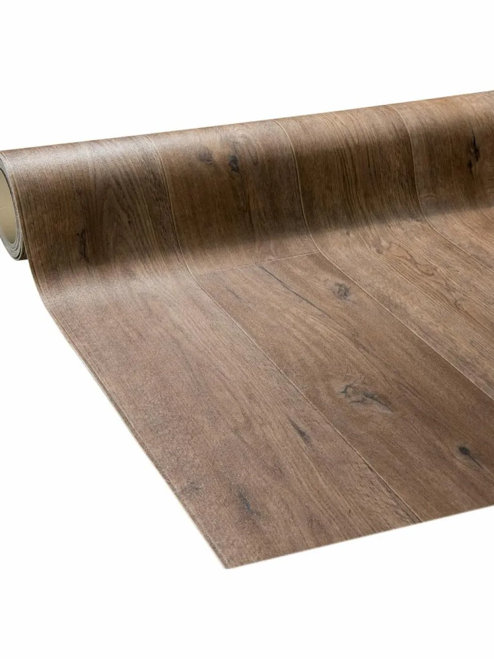Vinylbodenbelag mit natürlichem Holzdesign. Mit einer Stärke von 2,80 mm äußerst belastbar. Für den gesamten Wohnbereicht geeignet. Auch für Räume mit Fußbodenheizung geeignet.