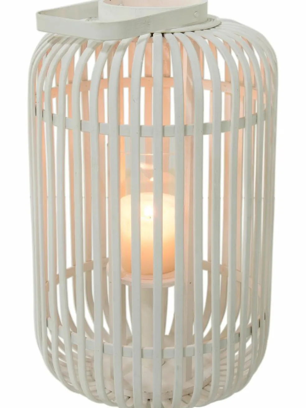Laterne aus Bambus mit Glaseinsatz für die Kerze.