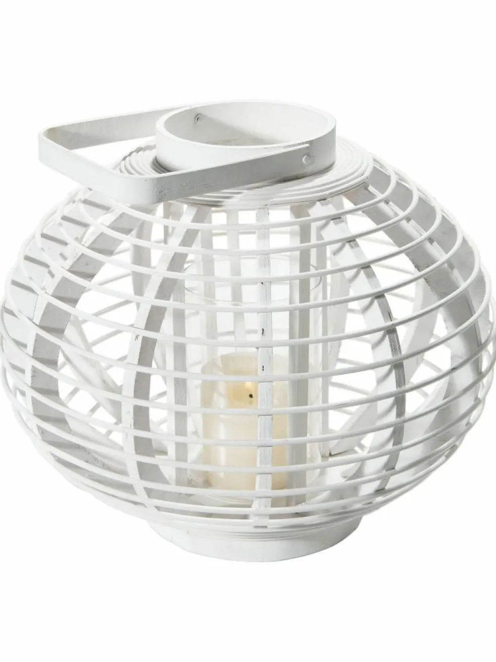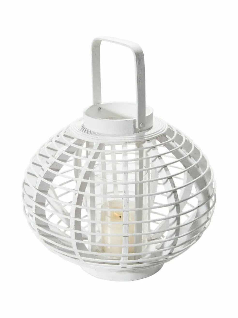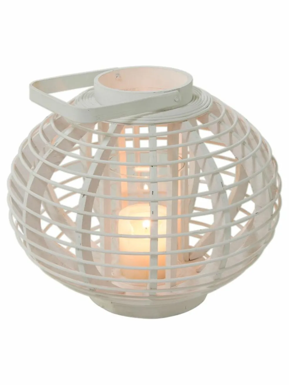 Kugellaterne in weiß. Aus Bambus gefertigt mit Glaseinsatz für die Kerze.