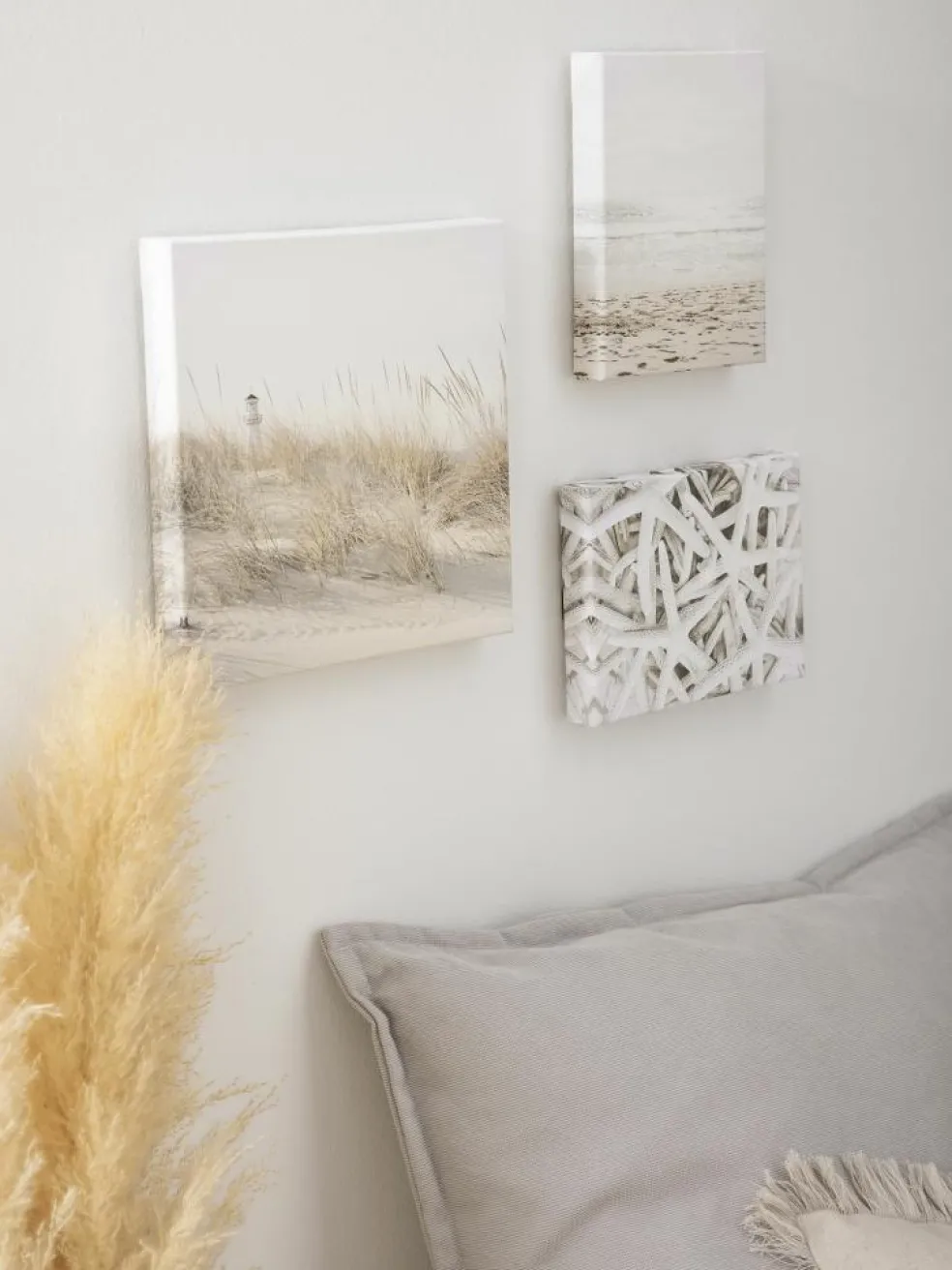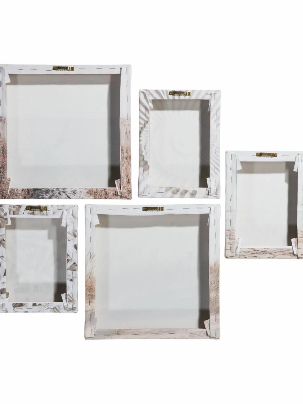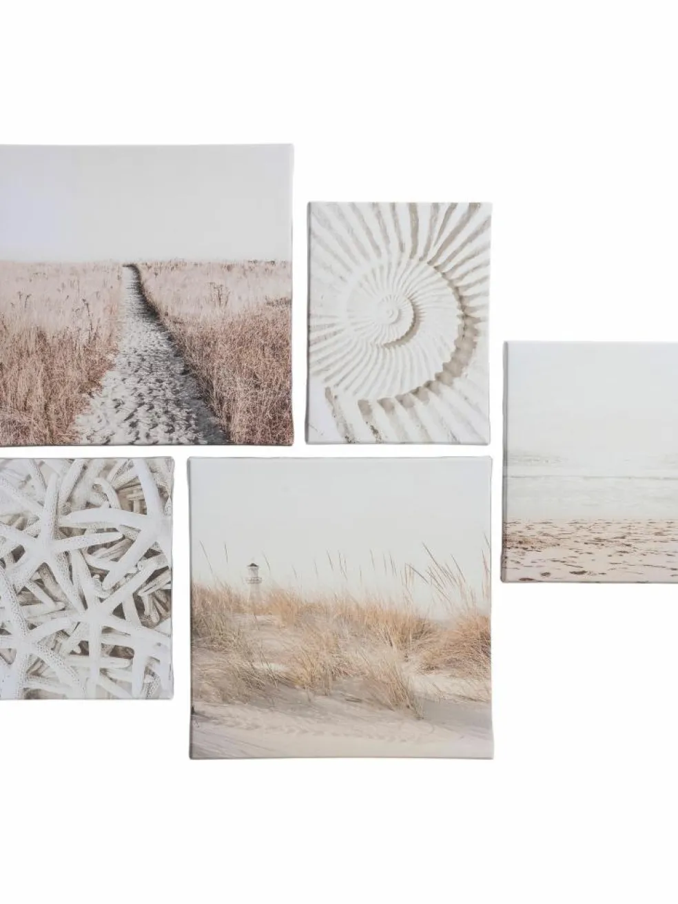 Stimmungsvolle Strandmotive. Lichtbeständiger Kunstdruck auf Holzrahmen montiert. Das Set besteht aus 5 Bildern in den Größen 2x 25 x 25 cm und 3x 15 x 20 cm.