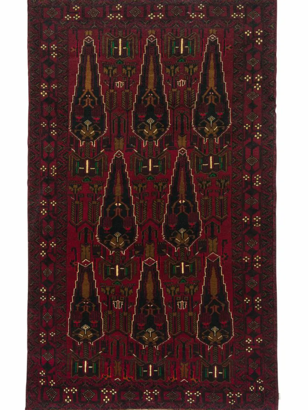 -Teppich hat seinen Namen vom Stamme der Baluchen, wird aber auch von anderen Stämmen geknüpft. Die einzelnen Stämme bleiben dabei ihren traditionellen Mustern und ihrer individuellen Farbgebung treu. Daher ist einBelutsch
