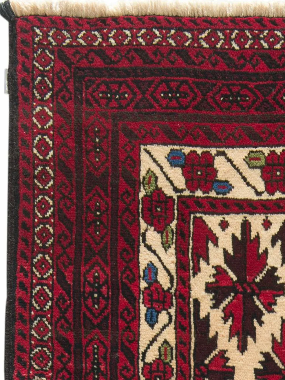 -Teppich hat seinen Namen vom Stamme der Baluchen, wird aber auch von anderen Stämmen geknüpft. Die einzelnen Stämme bleiben dabei ihren traditionellen Mustern und ihrer individuellen Farbgebung treu. Daher ist einBelutsch