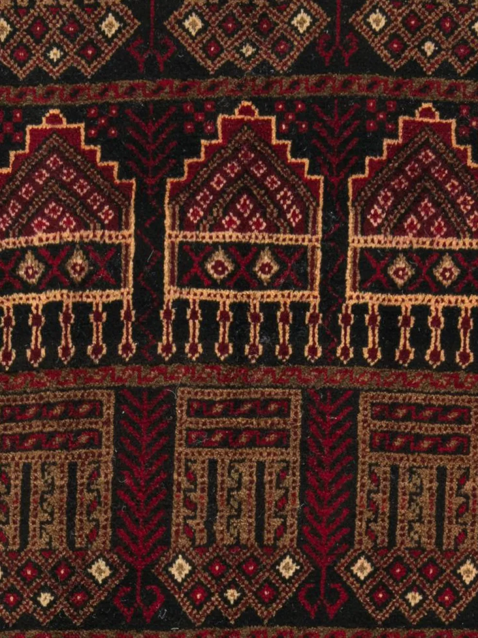 -Teppich hat seinen Namen vom Stamme der Baluchen, wird aber auch von anderen Stämmen geknüpft. Die einzelnen Stämme bleiben dabei ihren traditionellen Mustern und ihrer individuellen Farbgebung treu. Daher ist einBelutsch