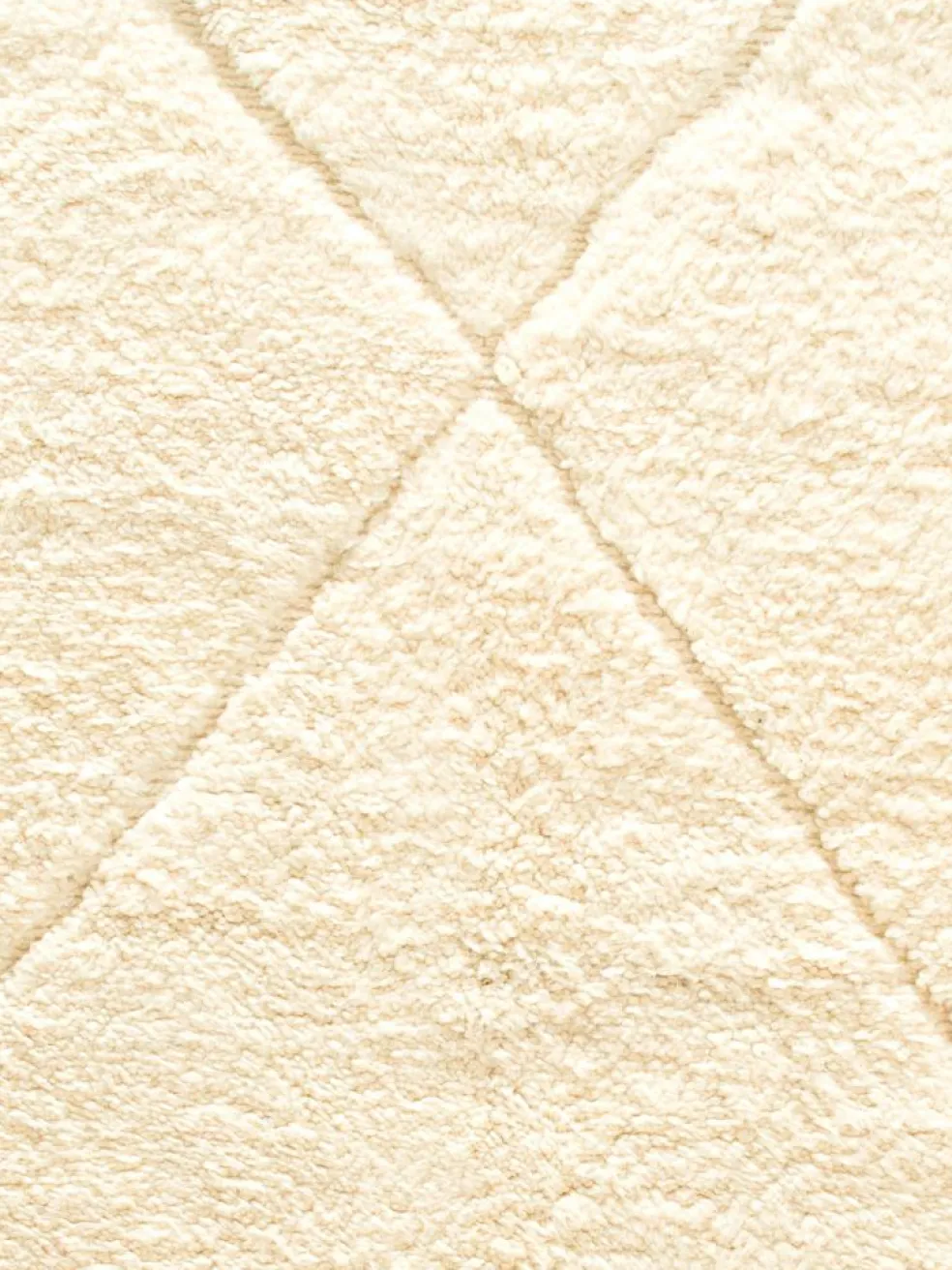 . Die Teppiche sind fast immer weißgrundig und zeichnen sich durch schwarze Zickzack-, Gitter- oder Rauten-Muster sowie einem wohnlich-zotteligen Flor aus. Kaum eine andere Teppichprovenienz passt mit ihren ursprünglichen nomadischen Designs besser in einen minimalistischen Wohnstil. Wie viele andere Nomadenteppiche auch, wurden dieBeni Ourain