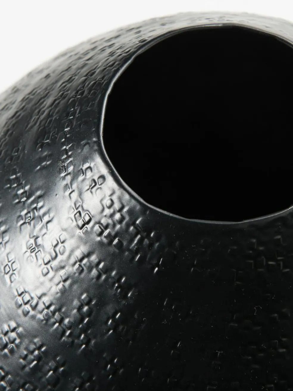 Formschöne Vase aus Aluminium mit fein strukturierter Oberfläche.