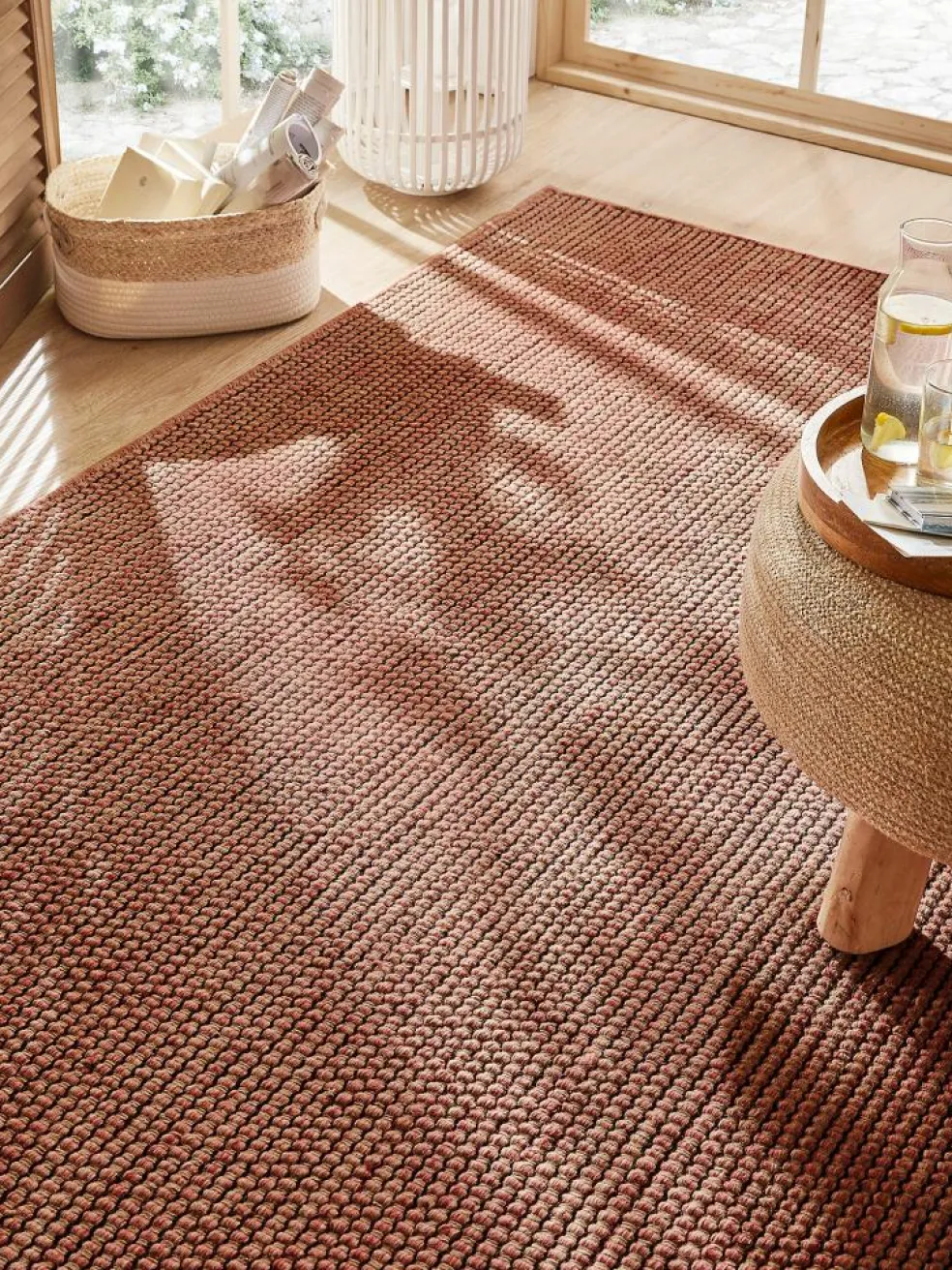 Klare Form und natürliche Materialien bilden den Charakter dieses Handwebteppichs. Sein fester Flor aus