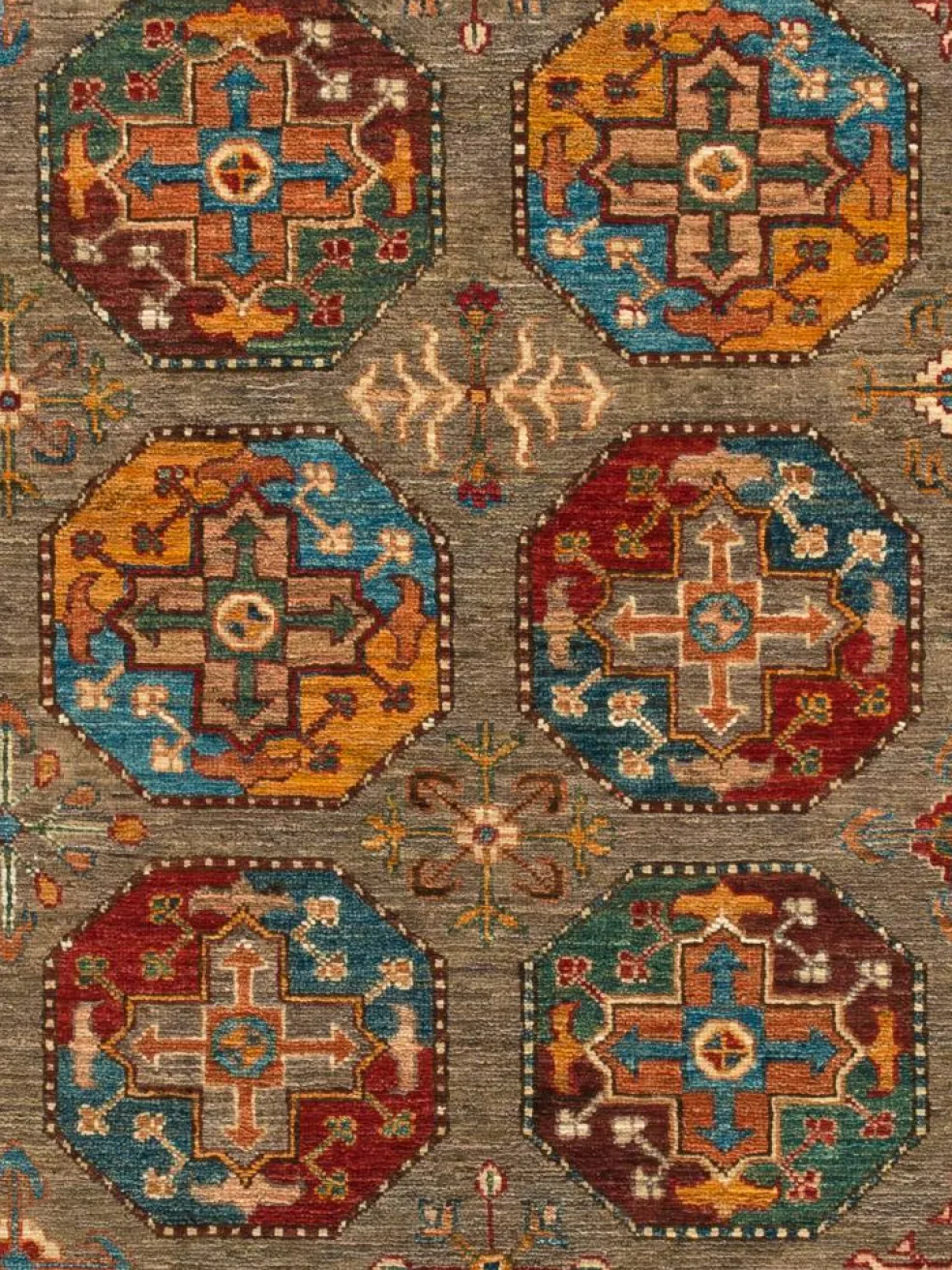 zeigt im Muster das klassische turkmenische Bucharadesign. Als Vorbild dienen dabei die jeweilige Stammeszeichen (Gül