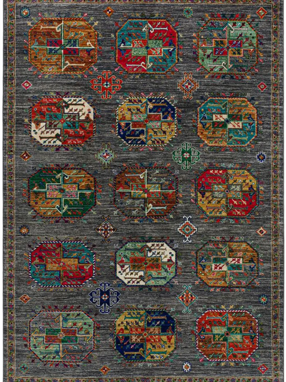 zeigt im Muster das klassische turkmenische Bucharadesign. Als Vorbild dienen dabei die jeweilige Stammeszeichen (Gül