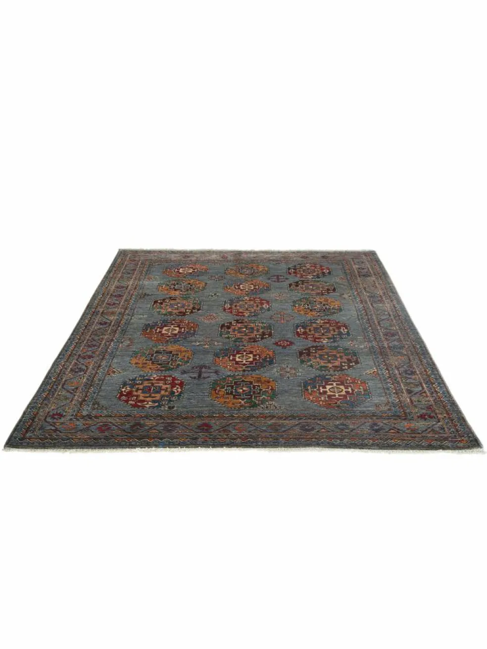 zeigt im Muster das klassische turkmenische Bucharadesign. Als Vorbild dienen dabei die jeweilige Stammeszeichen (Gül