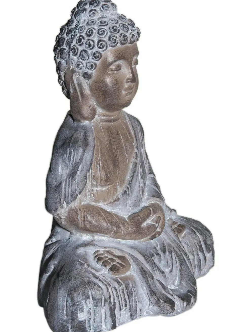 Outdoorgeeignete Buddha-Figur aus Magnesia. Wetterfest.