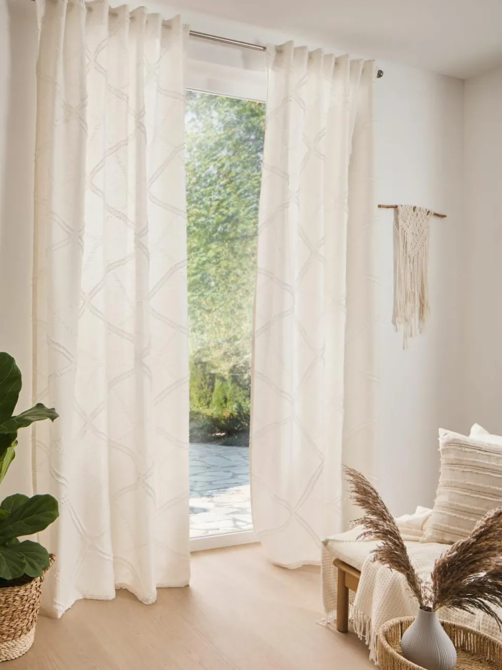 Dieser trendige Schlaufenschal im Boho-Look bietet mit seinem dezenten Design eine schöne Abwechslung zu anderen unifarbenen Vorhängen. Mit seiner schlichten Art ist er vielseitig einsetzbar und leicht mit anderen Textilien zu kombinieren. Hergestellt aus 95 % Polyester und 5 % Baumwolle. Waschbar bei bis zu 30 °C. Paket enthält je einen Schlaufenschal.