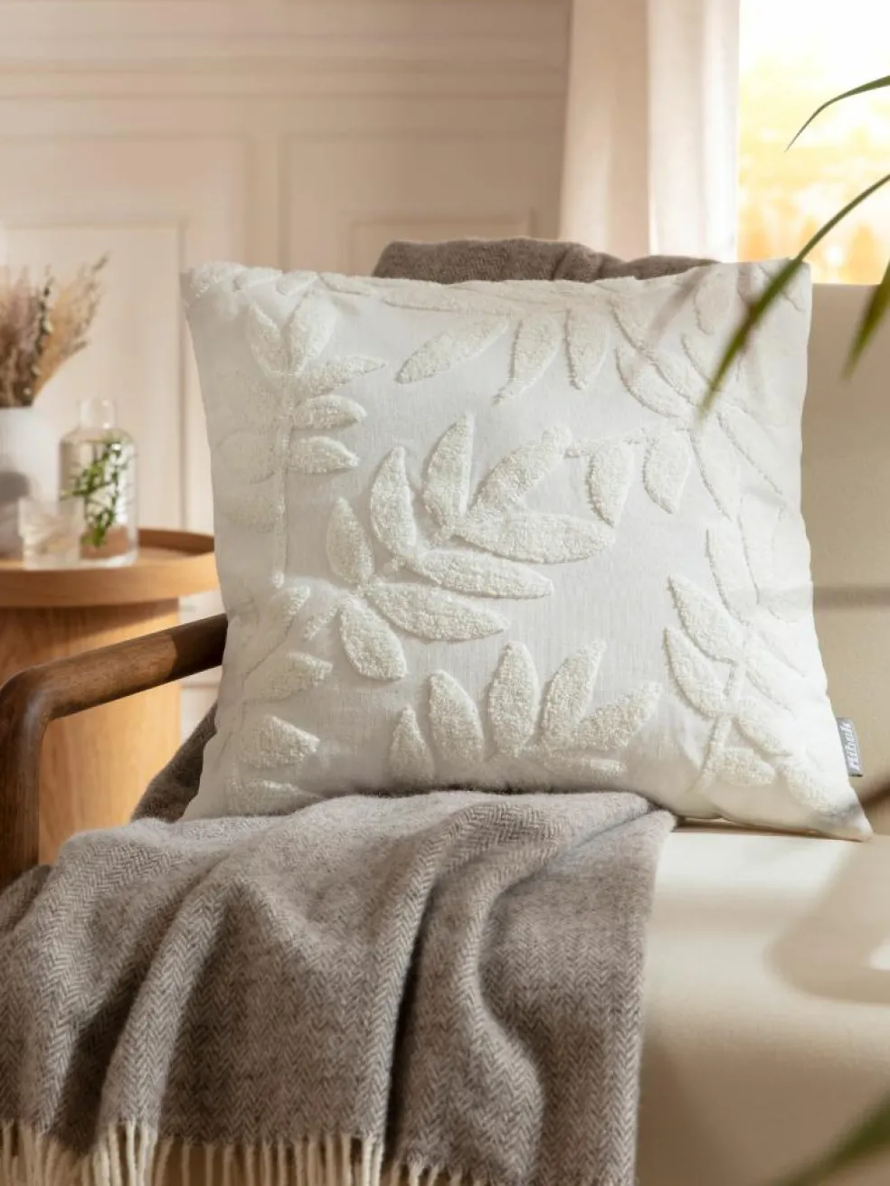 Durch die Hoch-Tief-Struktur erhält das Design seine große Tiefenwirkung. CALAMUS ist aus 100 % Baumwolle. Mit Füllung.
