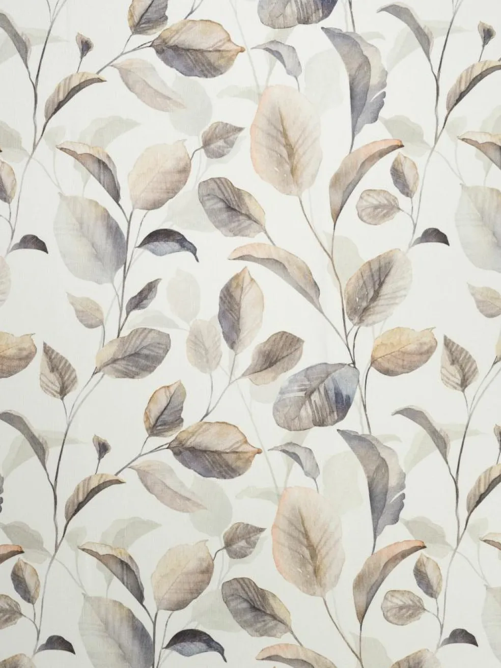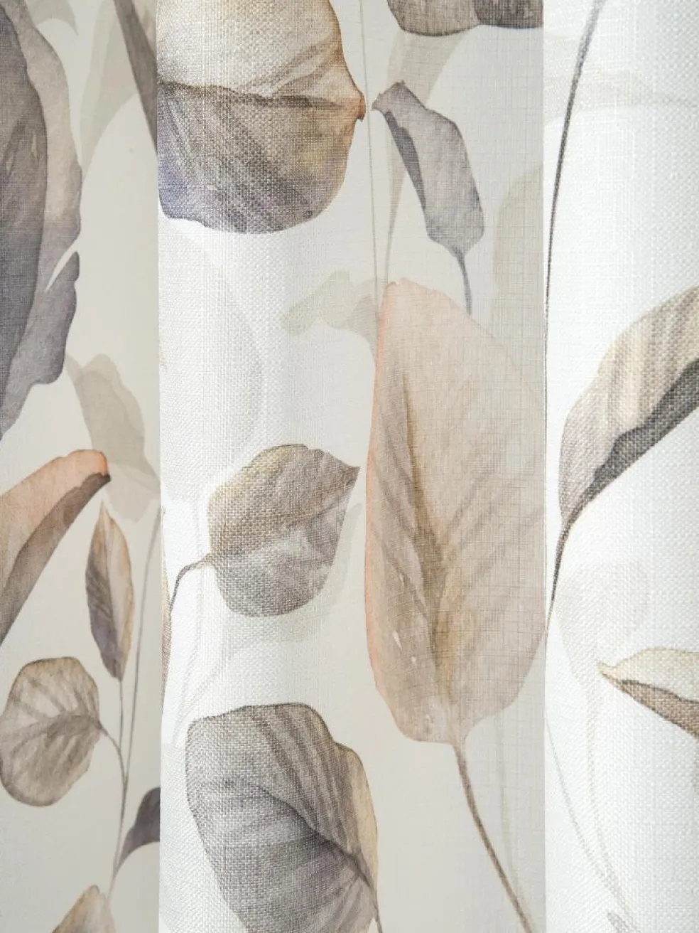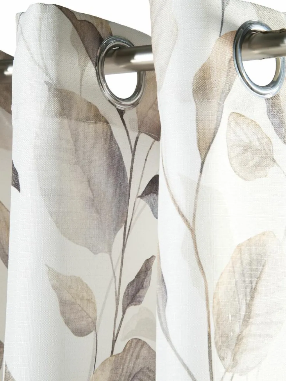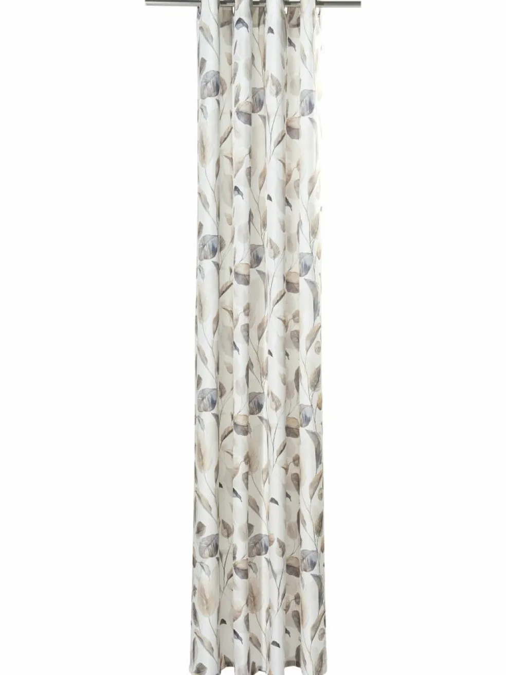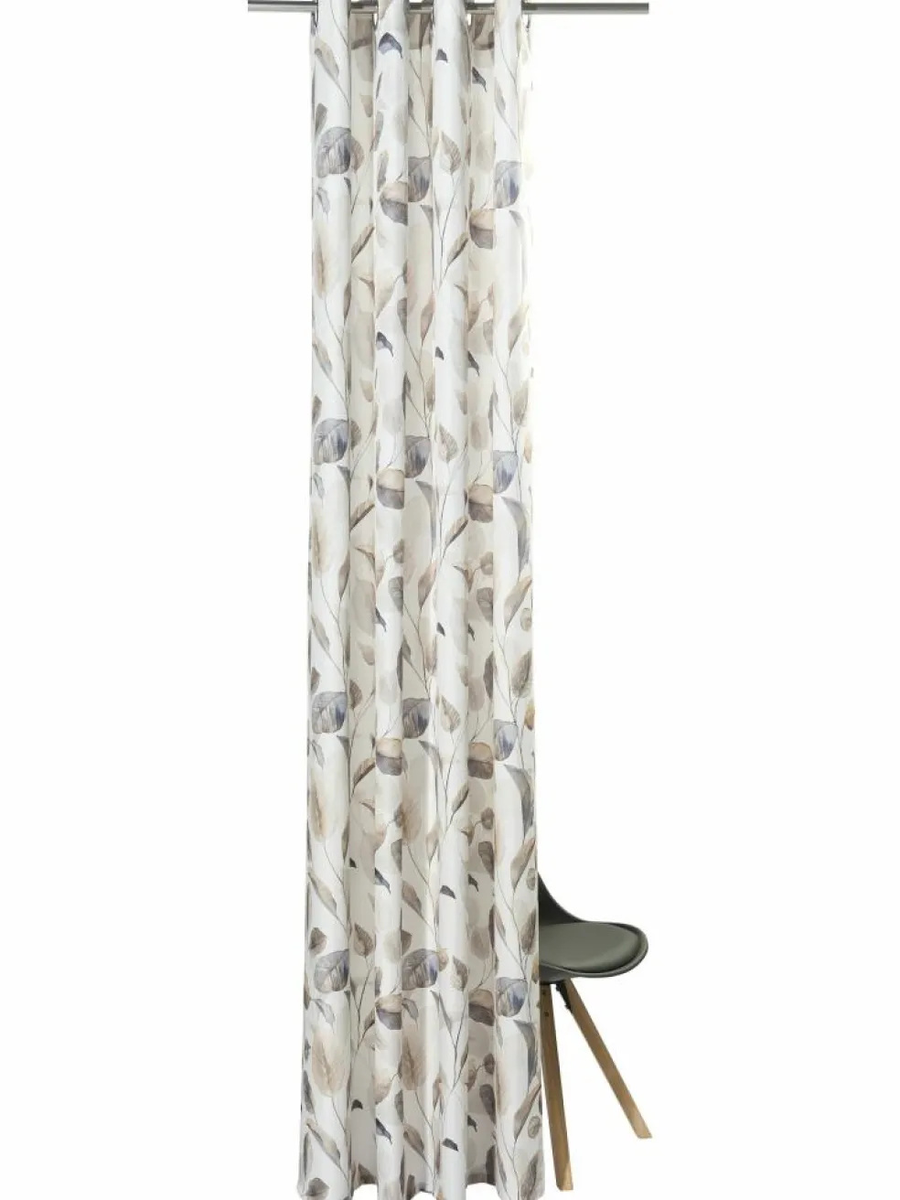 Ein dekorativer Ösenschal mit einem klassischen Blättermotiv im Digitaldruck. In Beige-Braun-Tönen ist der Schal eher schlicht gehalten und lässt sich gut in verschiedene Einrichtungsstile einfügen. Hergestellt aus 100 % Polyester ist er pflegeleicht und lässt sich bei bis zu 30 °C waschen. Paket entält je einen Ösenschal.