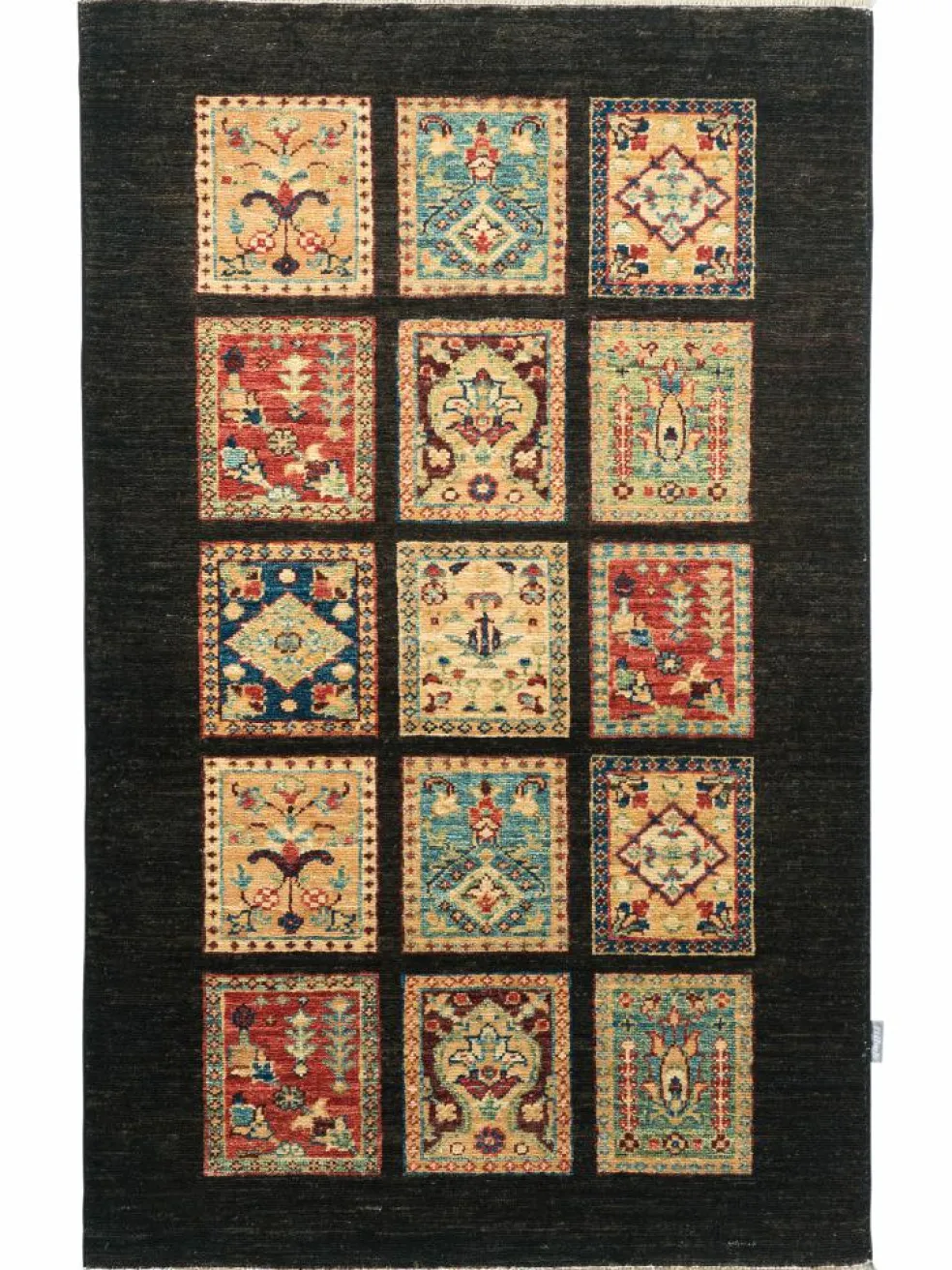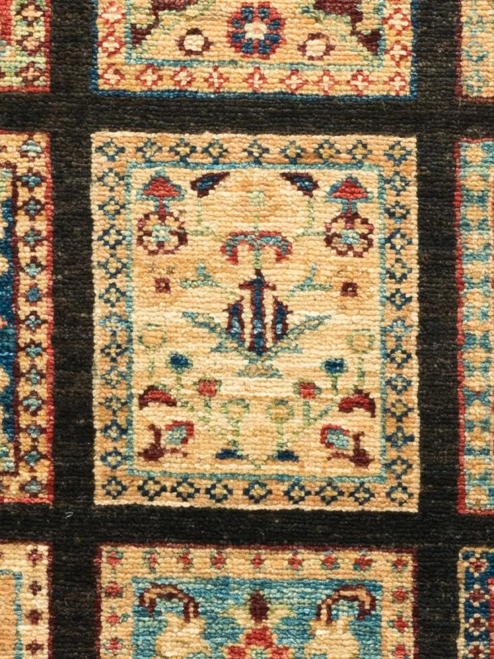 zeigt eine wunderschöne, farbenfrohe Interpretation des traditionellen, persischen Feldermusters. Das persischeFeldermuster