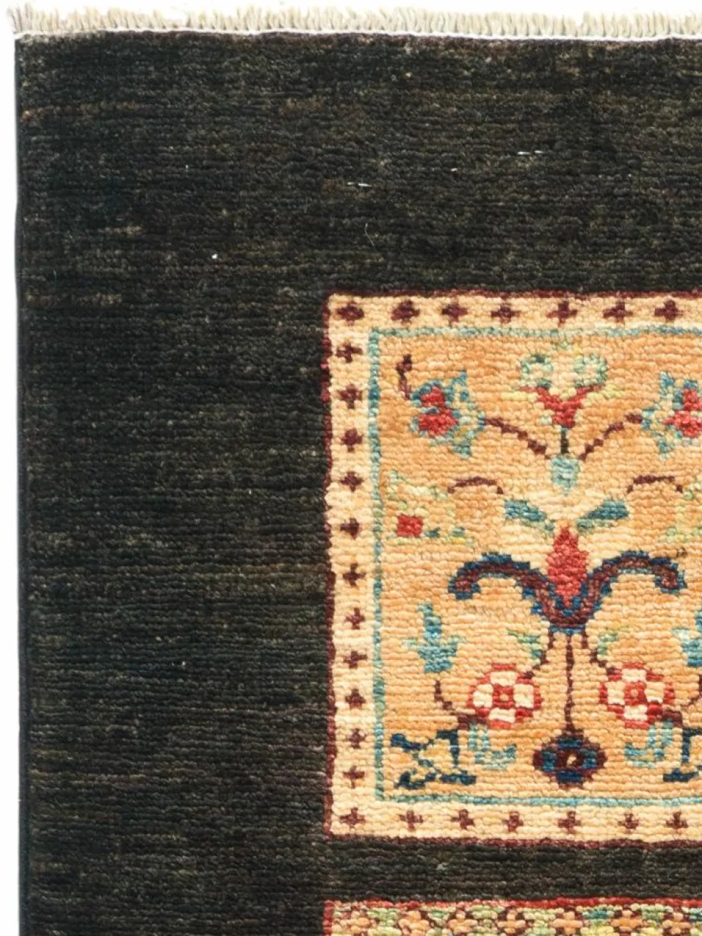 erinnert an einen üppig bewachsenen Garten mit geometrisch gegliederten, einzeln eingefassten Beeten zwischen denen die Bewässerungsgräben verlaufen. Durch den flachen und festen Flor ist der Teppich unempfindlich gegenüber den Belastungen des Alltags.| Gesamthöhe: | ca. 5 mm |