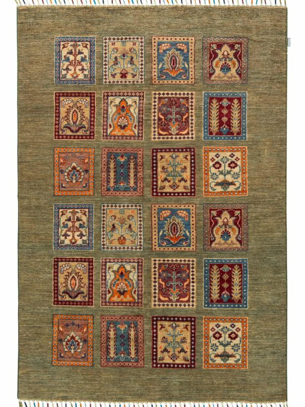 zeigt eine wunderschöne, farbenfrohe Interpretation des traditionellen, persischen Feldermusters. Das persischeFeldermuster
