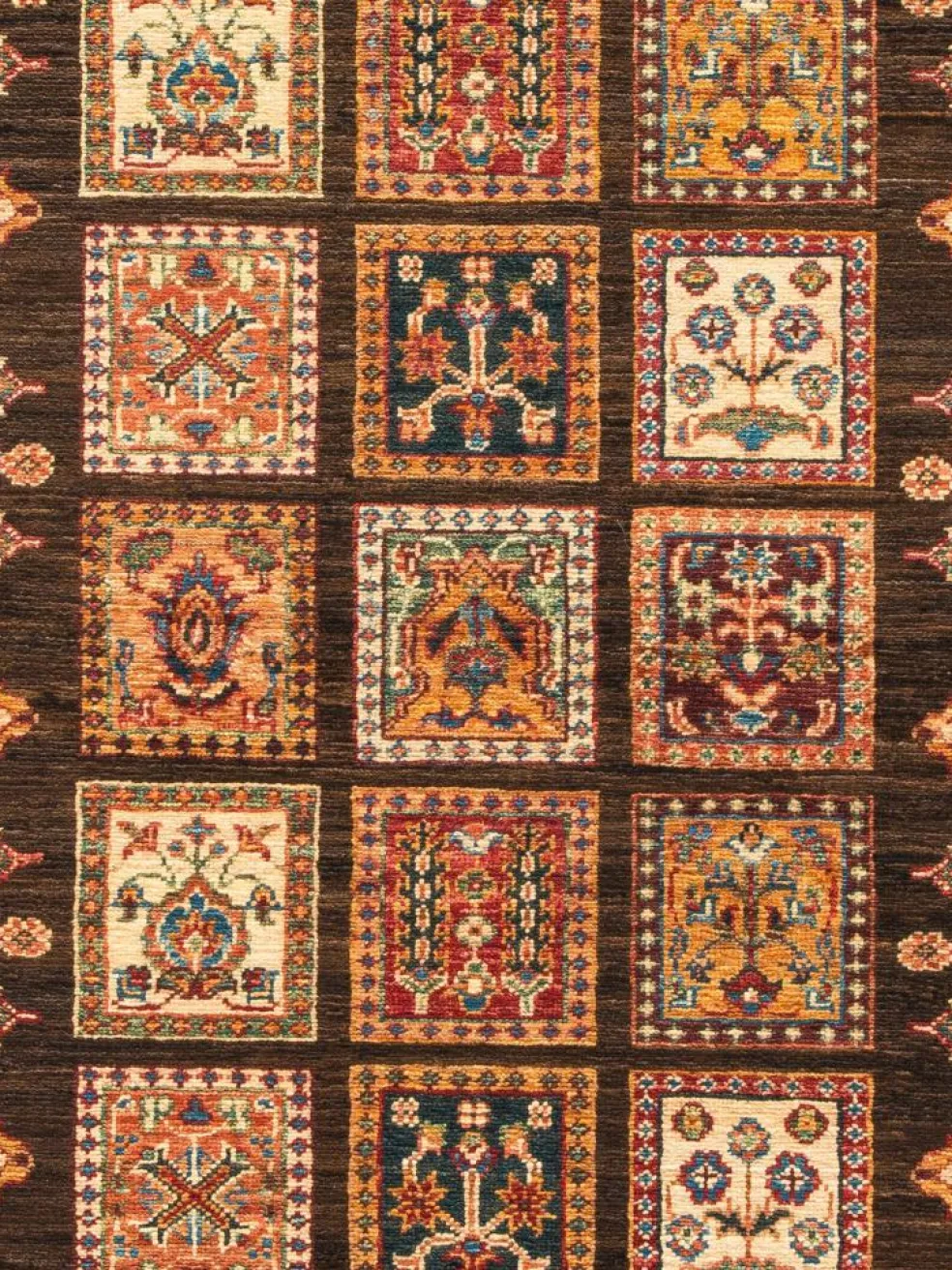 zeigt eine wunderschöne, farbenfrohe Interpretation des traditionellen, persischen Feldermusters. Das persischeFeldermuster