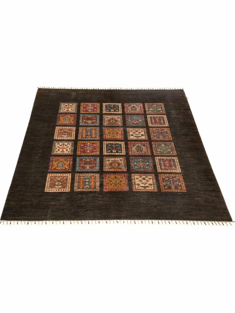erinnert an einen üppig bewachsenen Garten mit geometrisch gegliederten, einzeln eingefassten Beeten zwischen denen die Bewässerungsgräben verlaufen. Durch den flachen und festen Flor ist der Teppich unempfindlich gegenüber den Belastungen des Alltags.- Das Besondere an diesemOrientteppich