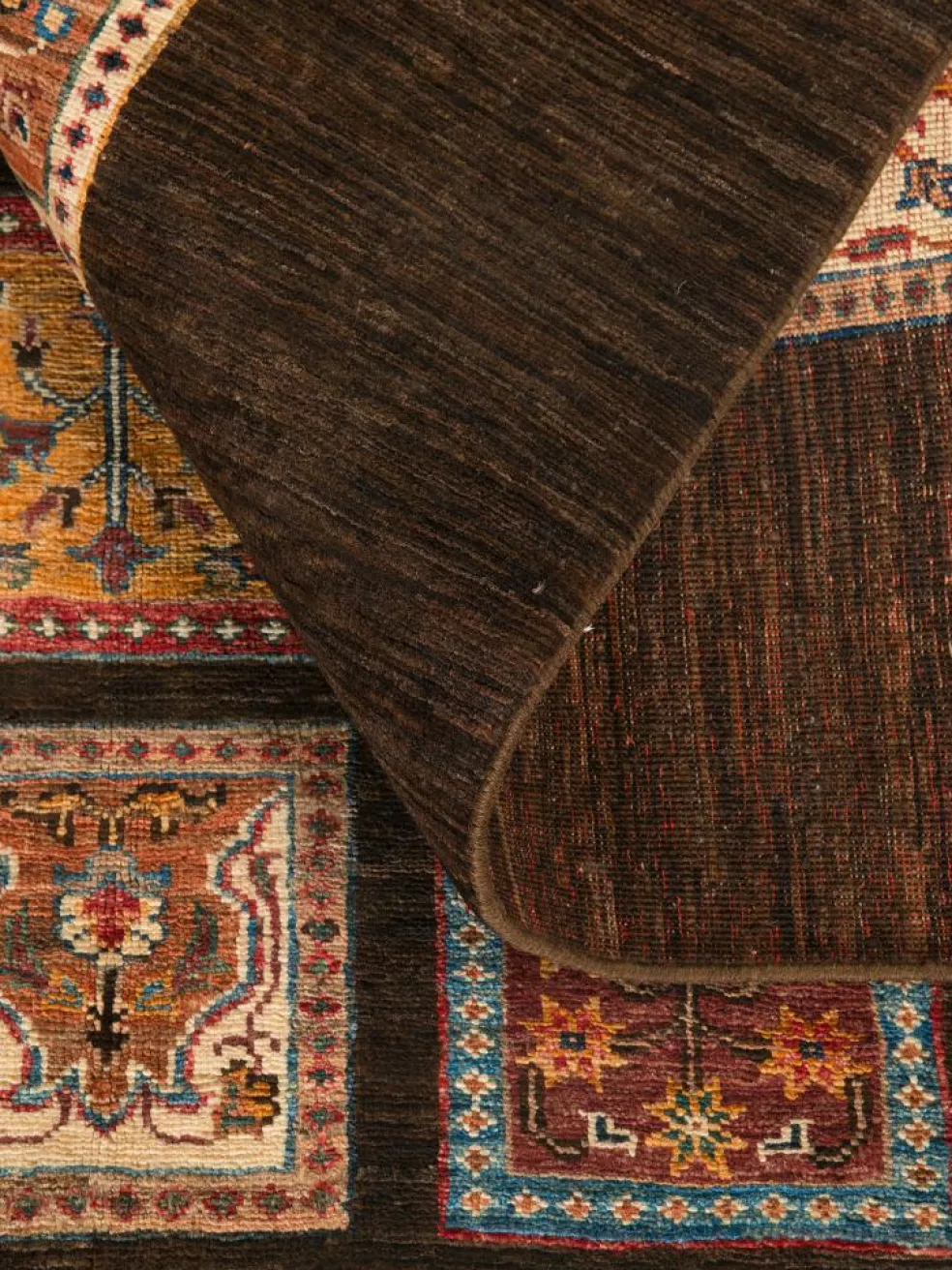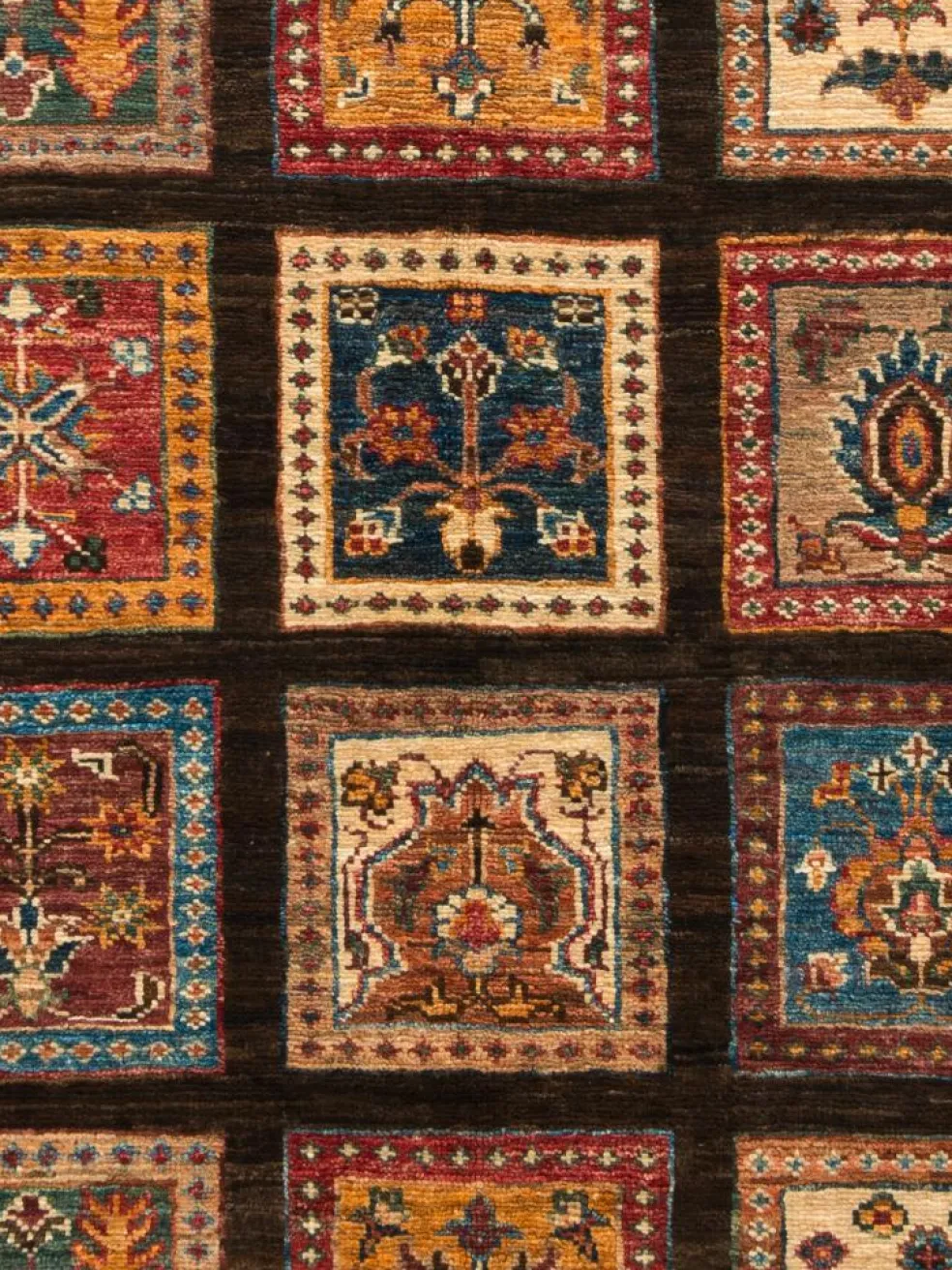 zeigt eine wunderschöne, farbenfrohe Interpretation des traditionellen, persischen Feldermusters. Das persischeFeldermuster