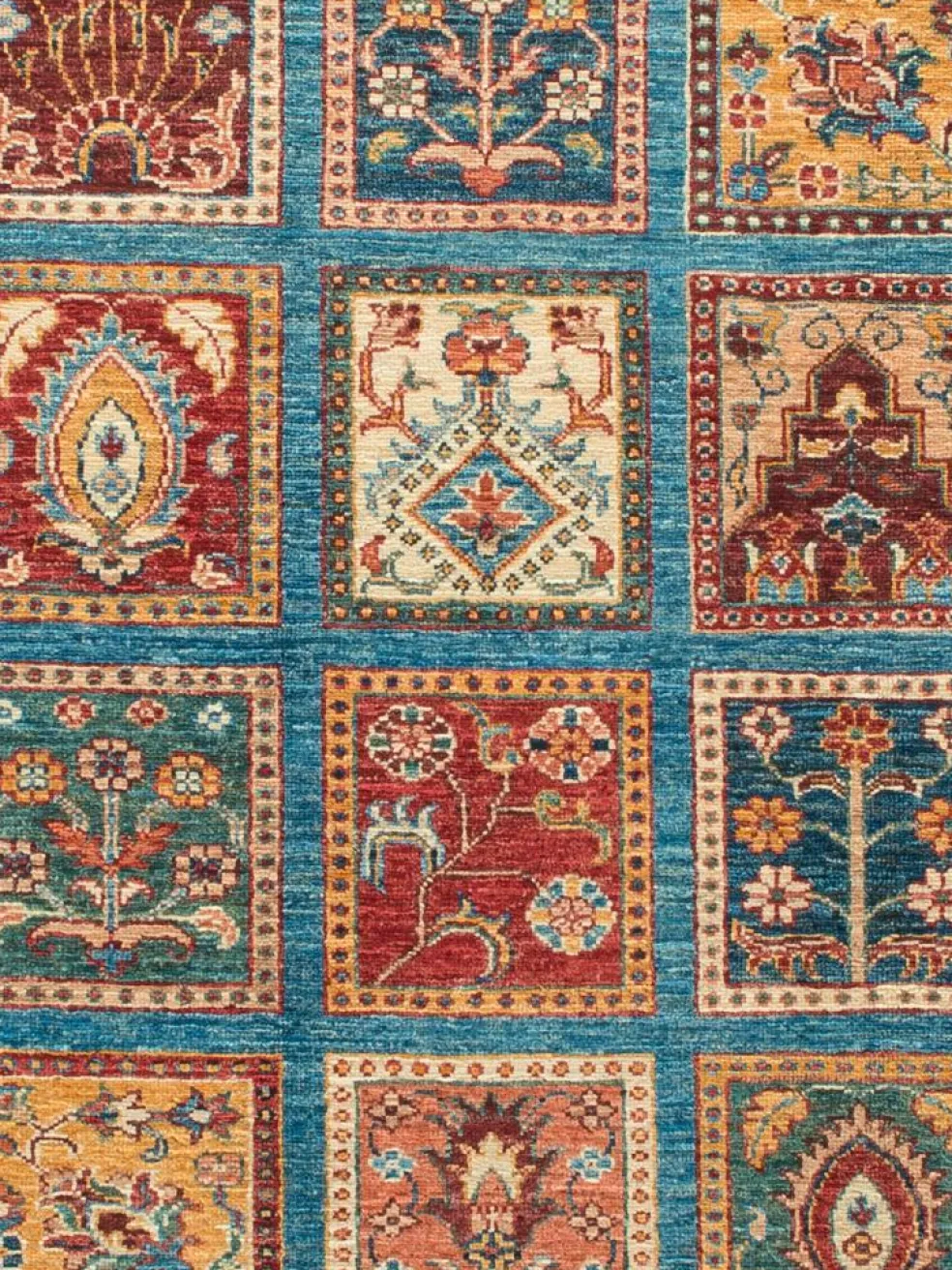 zeigt eine wunderschöne, farbenfrohe Interpretation des traditionellen, persischen Feldermusters. Das persischeFeldermuster