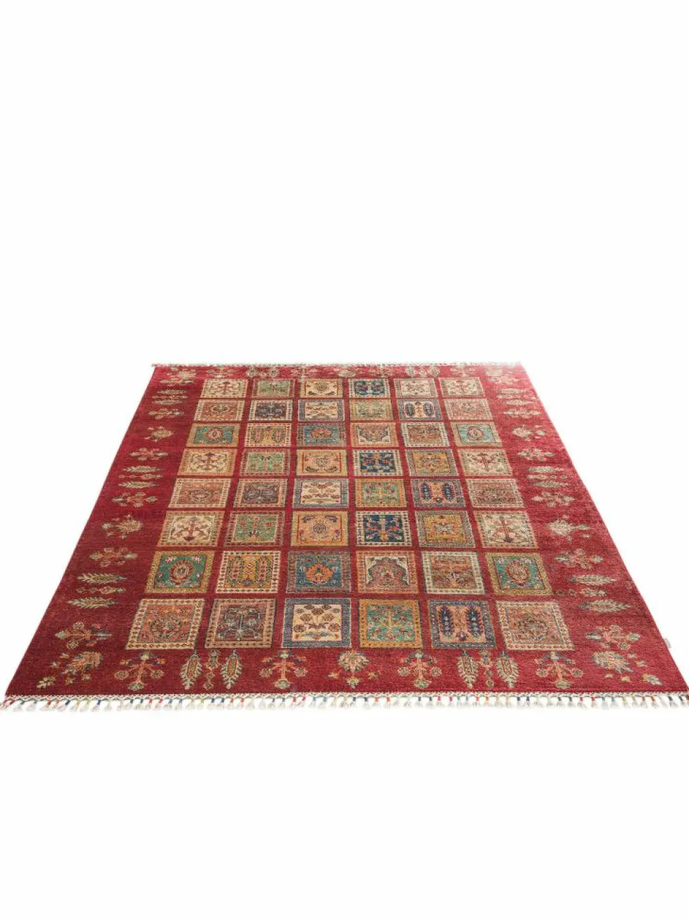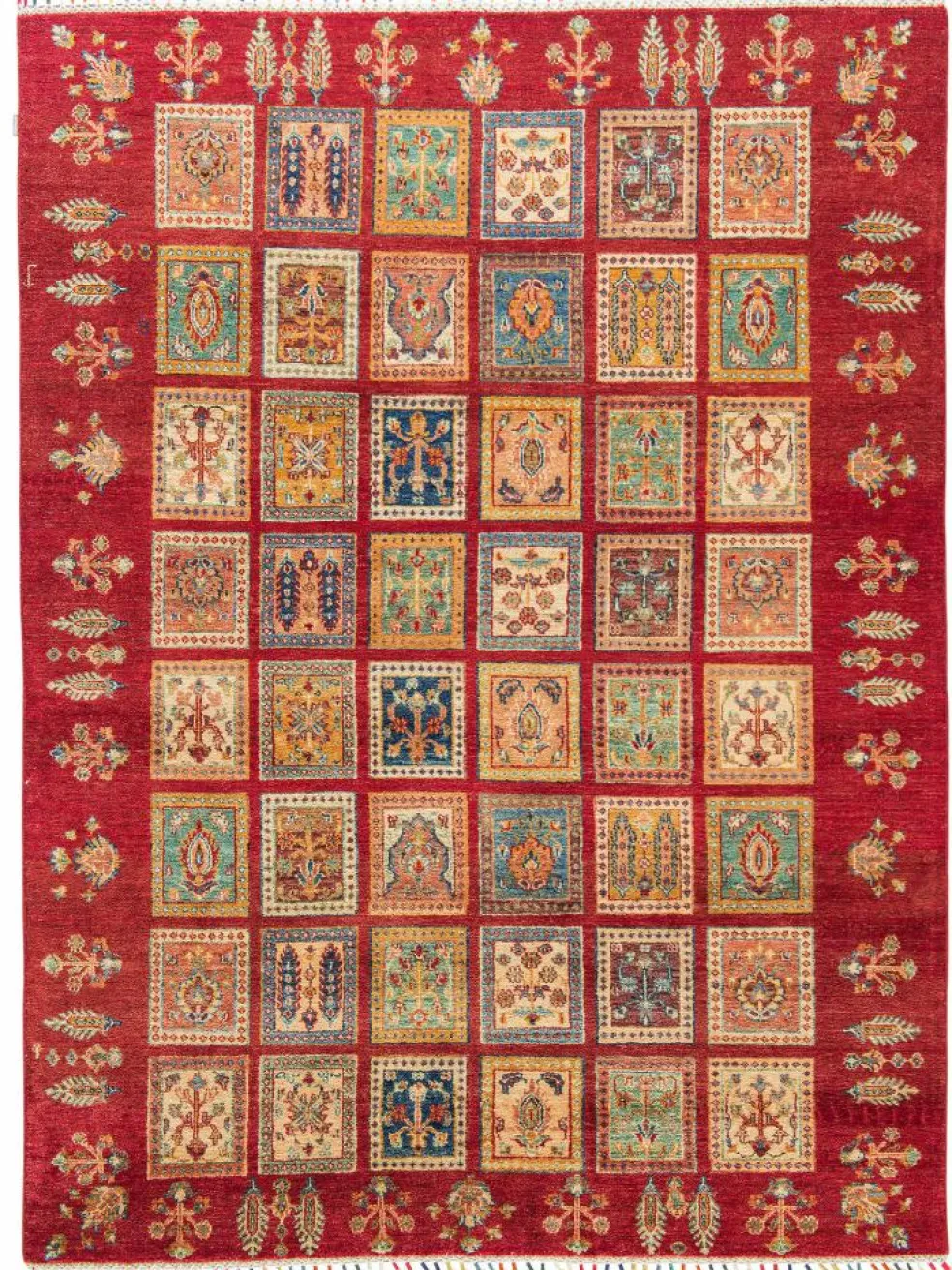 zeigt eine wunderschöne, farbenfrohe Interpretation des traditionellen, persischen Feldermusters. Das persischeFeldermuster