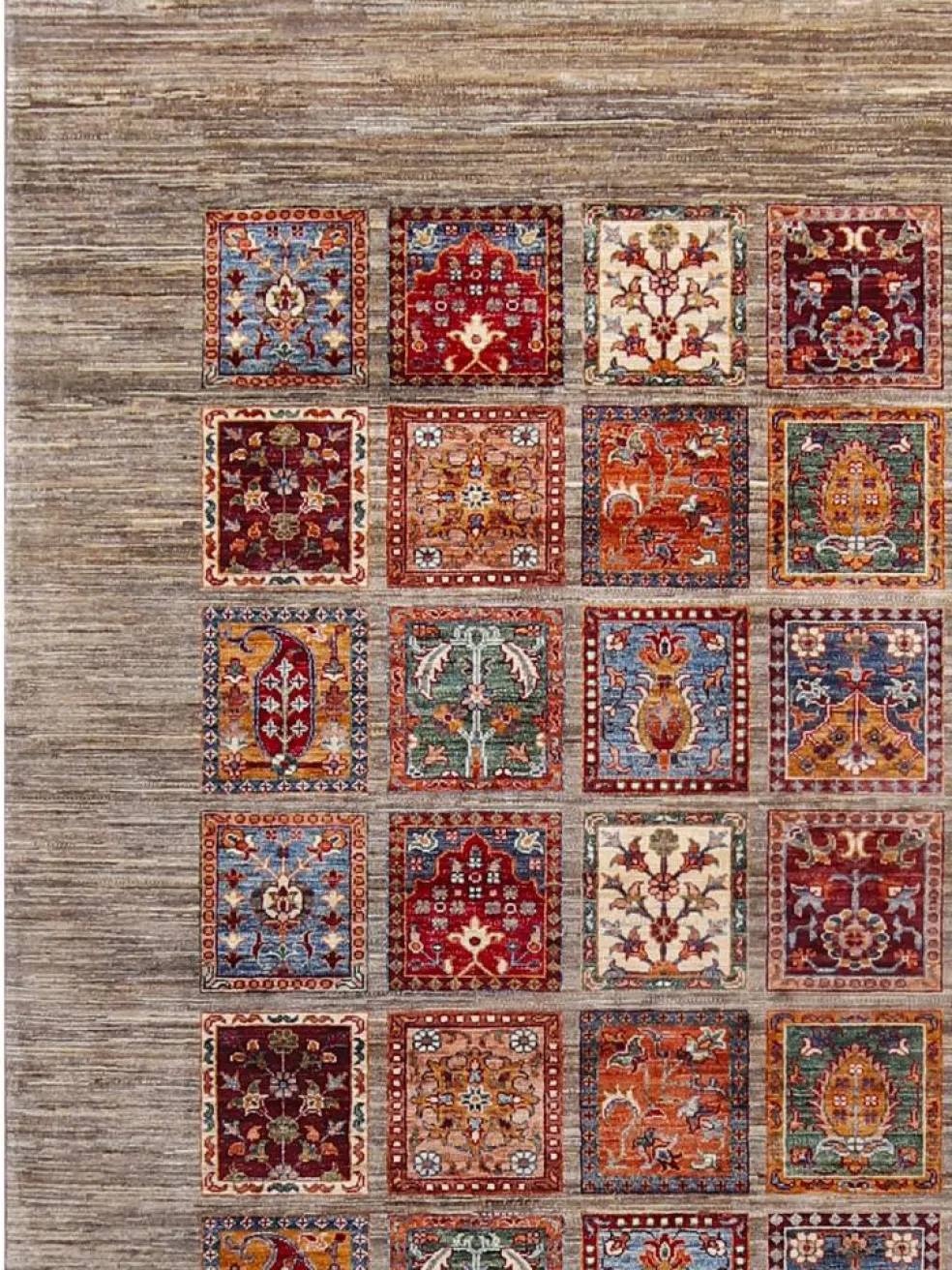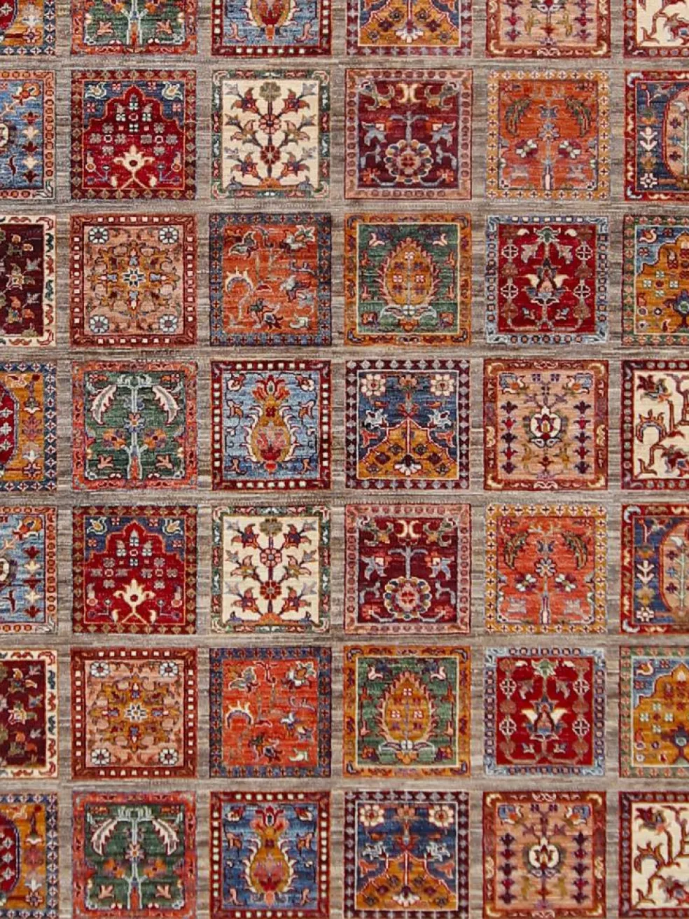 zeigt eine wunderschöne, farbenfrohe Interpretation des traditionellen, persischen Feldermusters. Das persischeFeldermuster