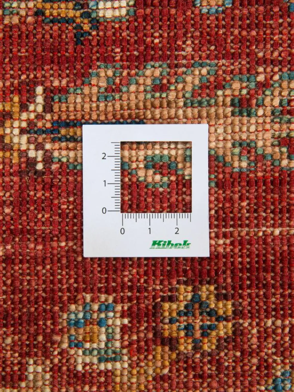 erinnert an einen üppig bewachsenen Garten mit geometrisch gegliederten, einzeln eingefassten Beeten zwischen denen die Bewässerungsgräben verlaufen. Durch den flachen und festen Flor ist der Teppich unempfindlich gegenüber den Belastungen des Alltags.- Das Besondere an diesemOrientteppich