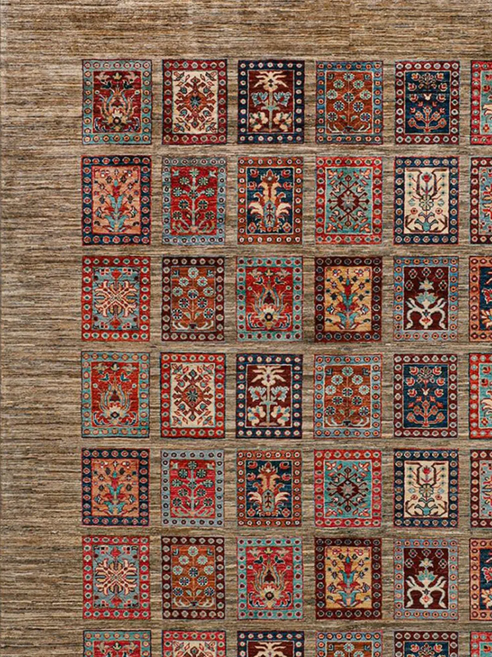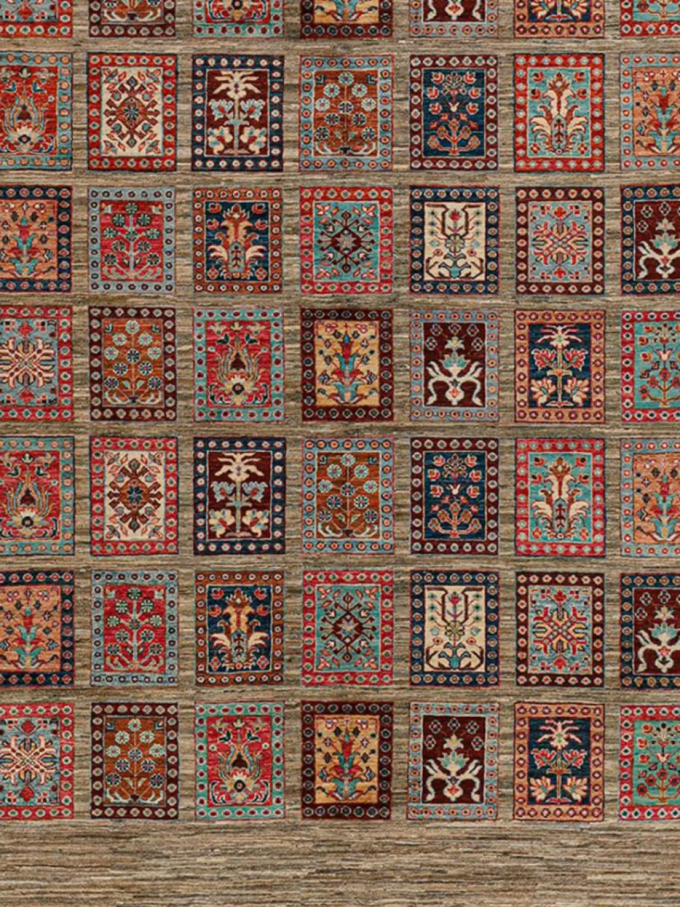 zeigt eine wunderschöne, farbenfrohe Interpretation des traditionellen, persischen Feldermusters. Das persischeFeldermuster