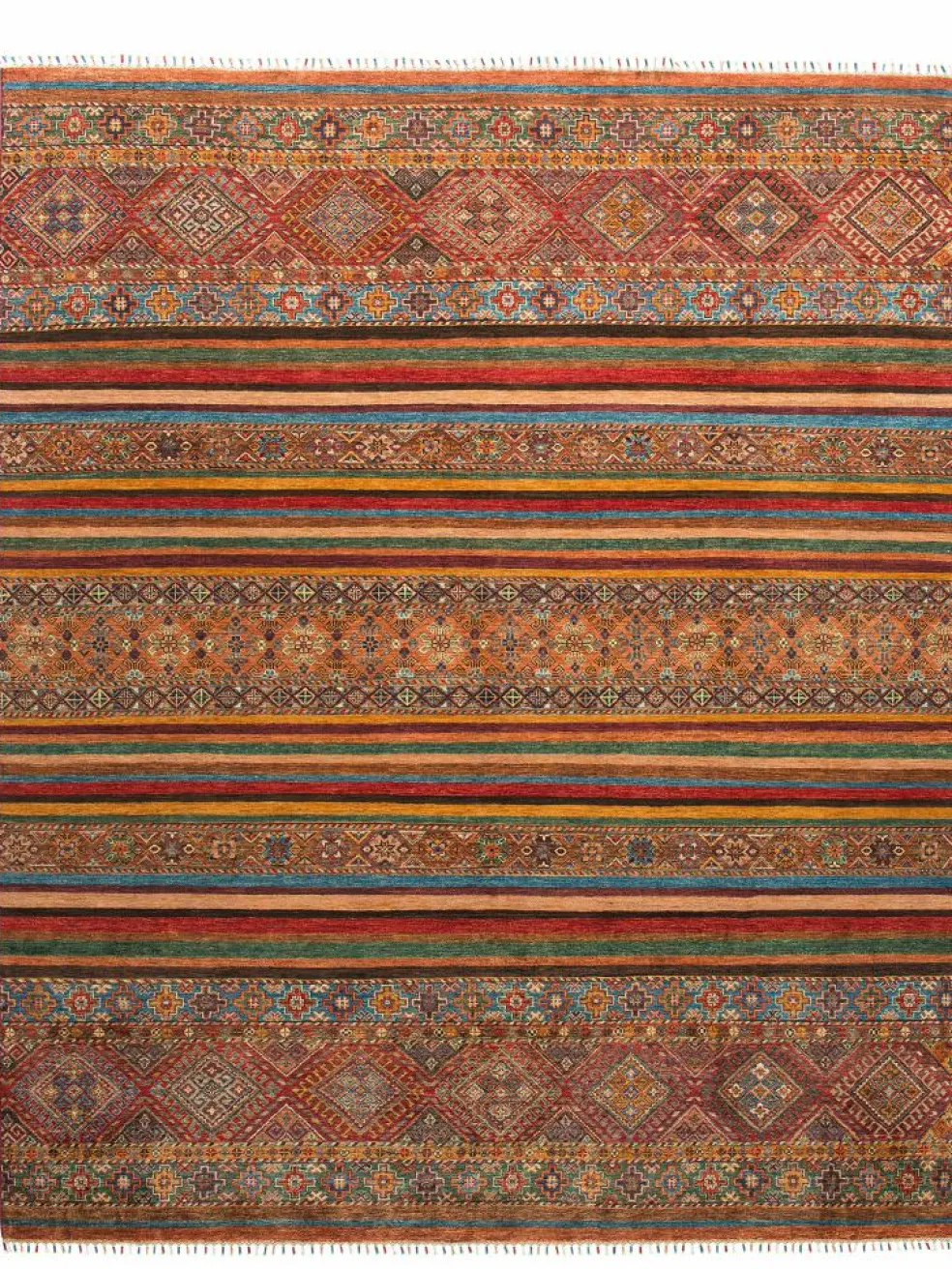 Schal sind farbenfrohe Orientteppiche mit Streifen in vielen verschiedenen Variationen. Einige Teppiche sind längs gestreift und andere quer. Vorbild für diese abwechslungsreichen Streifen ist das persischeMoharamati
