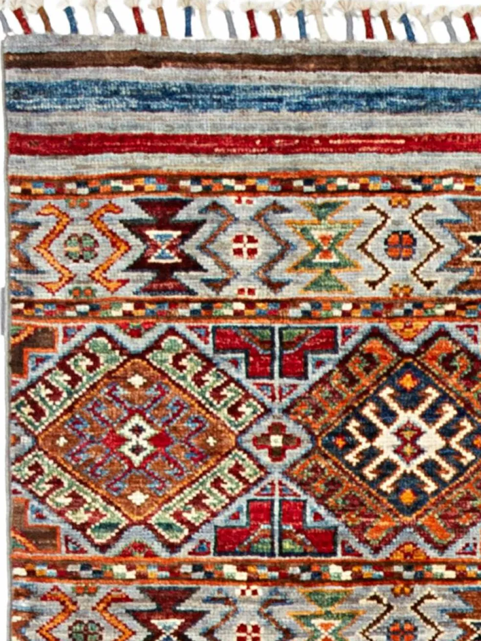 Schal sind farbenfrohe Orientteppiche mit Streifen in vielen verschiedenen Variationen. Einige Teppiche sind längs gestreift und andere quer. Vorbild für diese abwechslungsreichen Streifen ist das persischeMoharamati