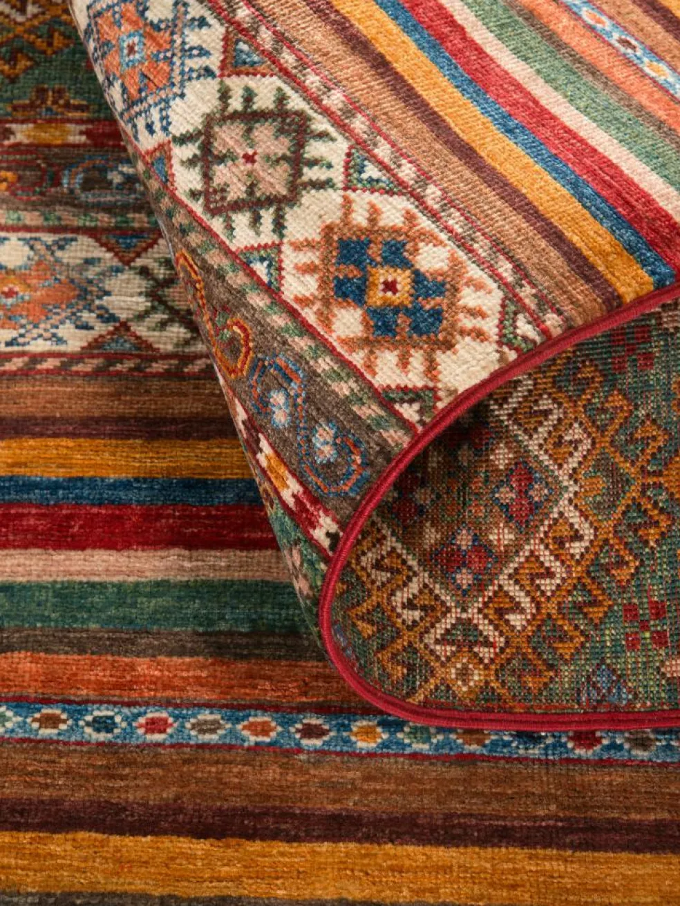 Schal sind farbenfrohe Orientteppiche mit Streifen in vielen verschiedenen Variationen. Einige Teppiche sind längs gestreift und andere quer. Vorbild für diese abwechslungsreichen Streifen ist das persischeMoharamati