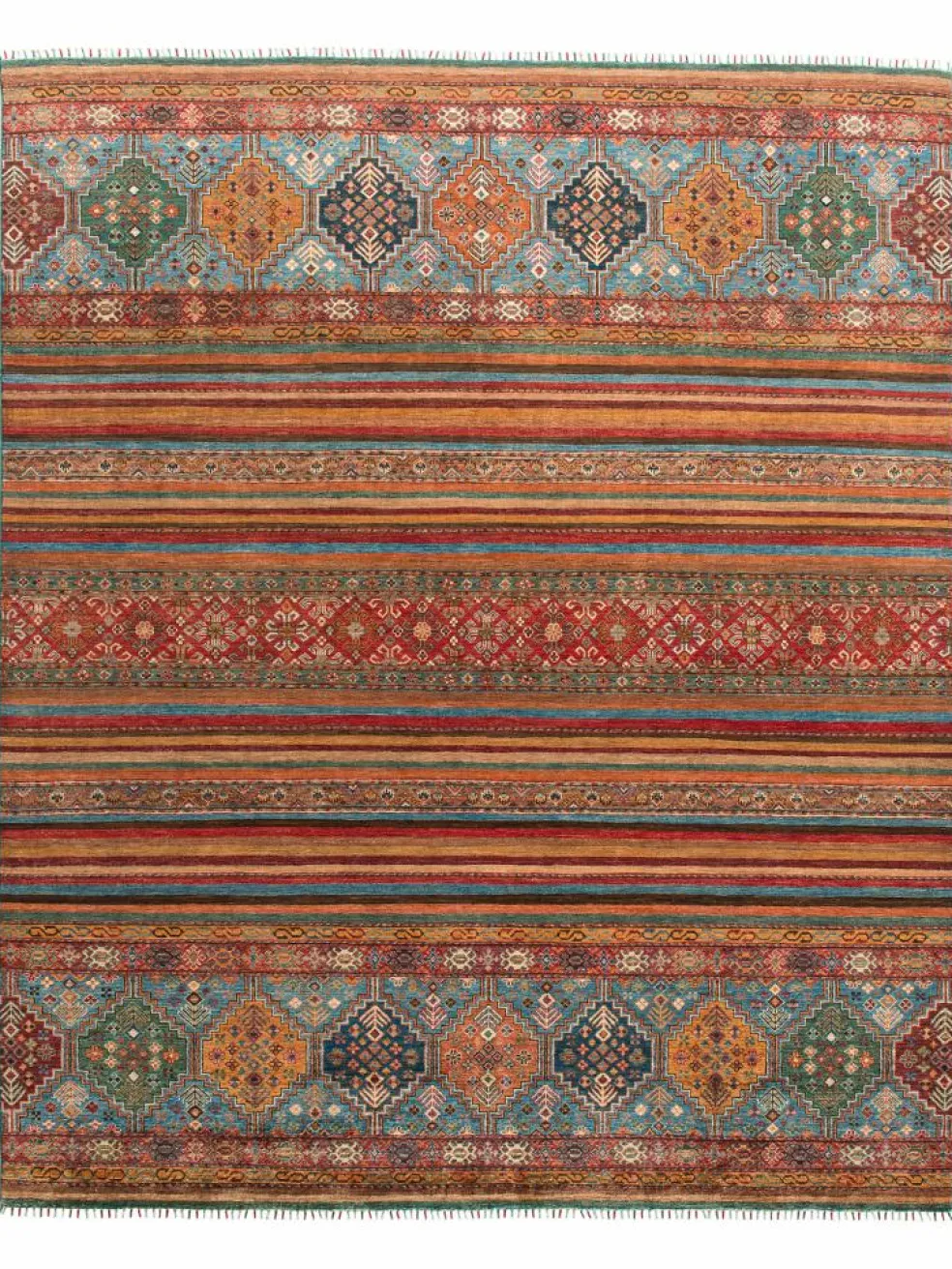 Schal sind farbenfrohe Orientteppiche mit Streifen in vielen verschiedenen Variationen. Einige Teppiche sind längs gestreift und andere quer. Vorbild für diese abwechslungsreichen Streifen ist das persischeMoharamati
