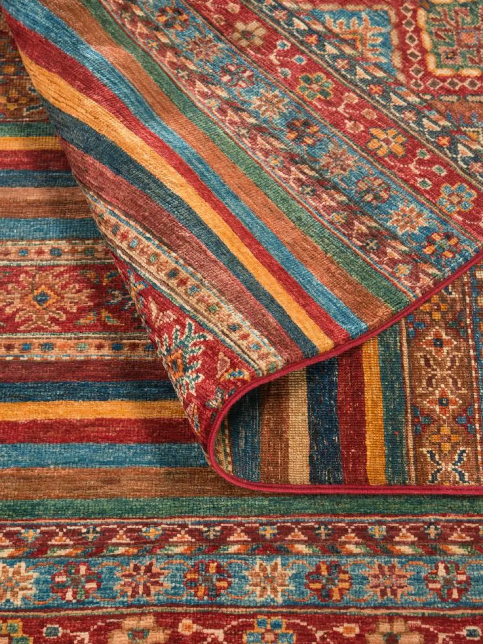 Schal sind farbenfrohe Orientteppiche mit Streifen in vielen verschiedenen Variationen. Einige Teppiche sind längs gestreift und andere quer. Vorbild für diese abwechslungsreichen Streifen ist das persischeMoharamati
