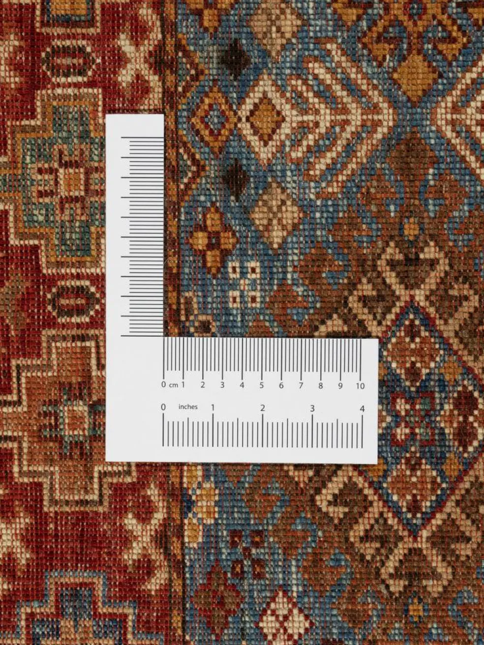 -Muster sind bunte Längsstreifen mit vielen verschiedenen Motiven gefüllt. Durch den flachen und festen Flor ist der Teppich unempfindlich gegenüber den Belastungen des Alltags. – Das Besondere an diesemOrientteppich