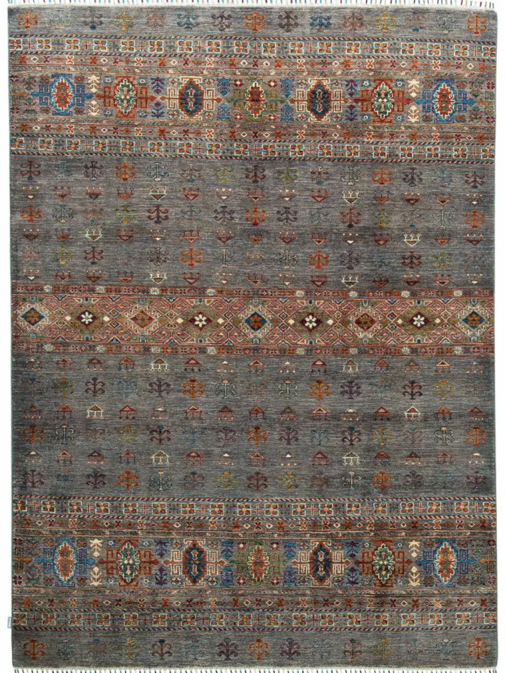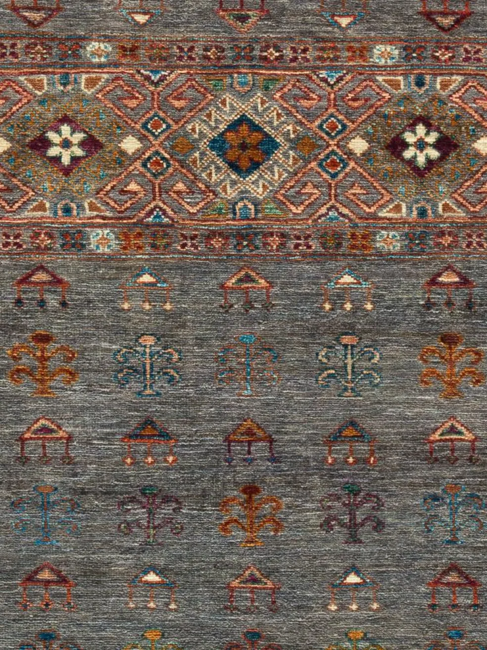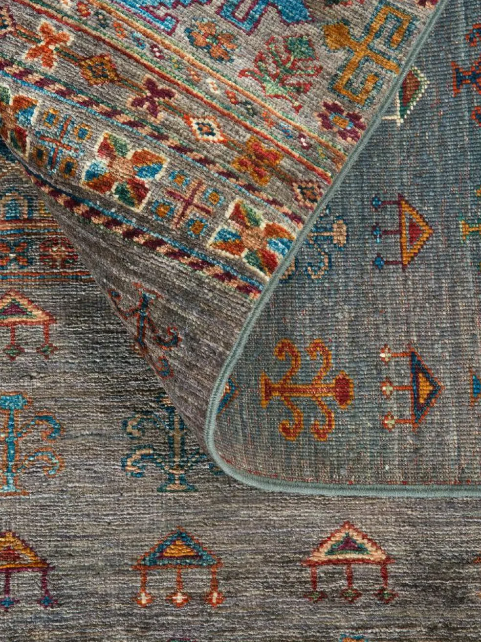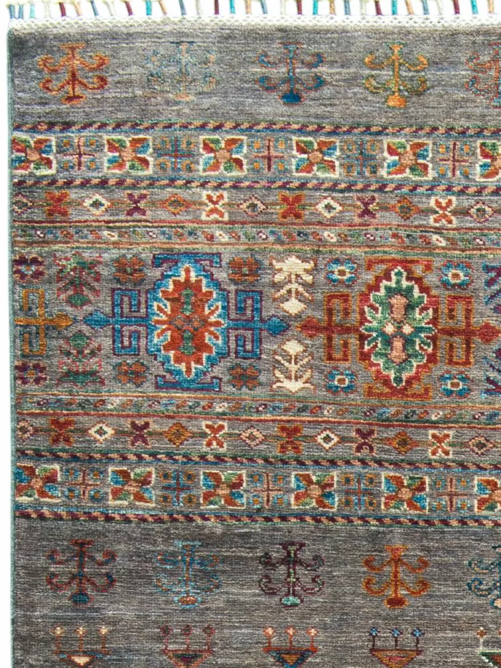 -Muster sind bunte Längsstreifen mit vielen verschiedenen Motiven gefüllt. Durch den flachen und festen Flor ist der Teppich unempfindlich gegenüber den Belastungen des Alltags.- Das Besondere an diesemOrientteppich