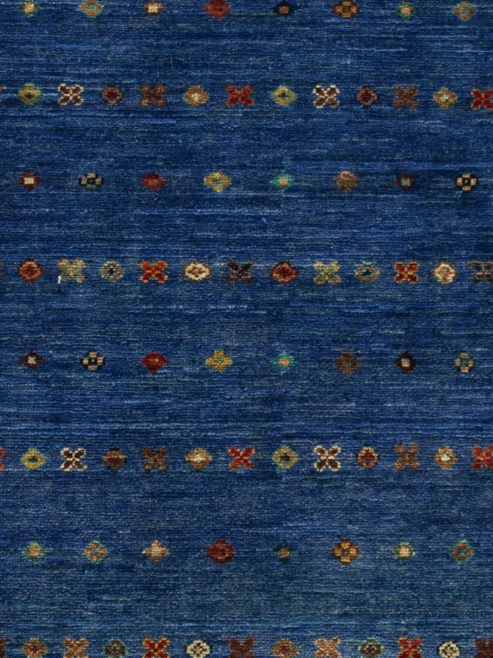 mit bunten Fäden zusammen gebunden. Durch den flachen und festen Flor ist der Teppich unempfindlich gegenüber den Belastungen des Alltags.| Gesamthöhe: | ca. 6 mm |