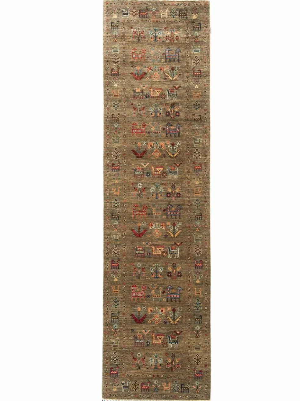 -Muster sind bunte Längsstreifen mit vielen verschiedenen Motiven gefüllt. Durch den flachen und festen Flor ist der Teppich unempfindlich gegenüber den Belastungen des Alltags.- Das Besondere an diesemOrientteppich