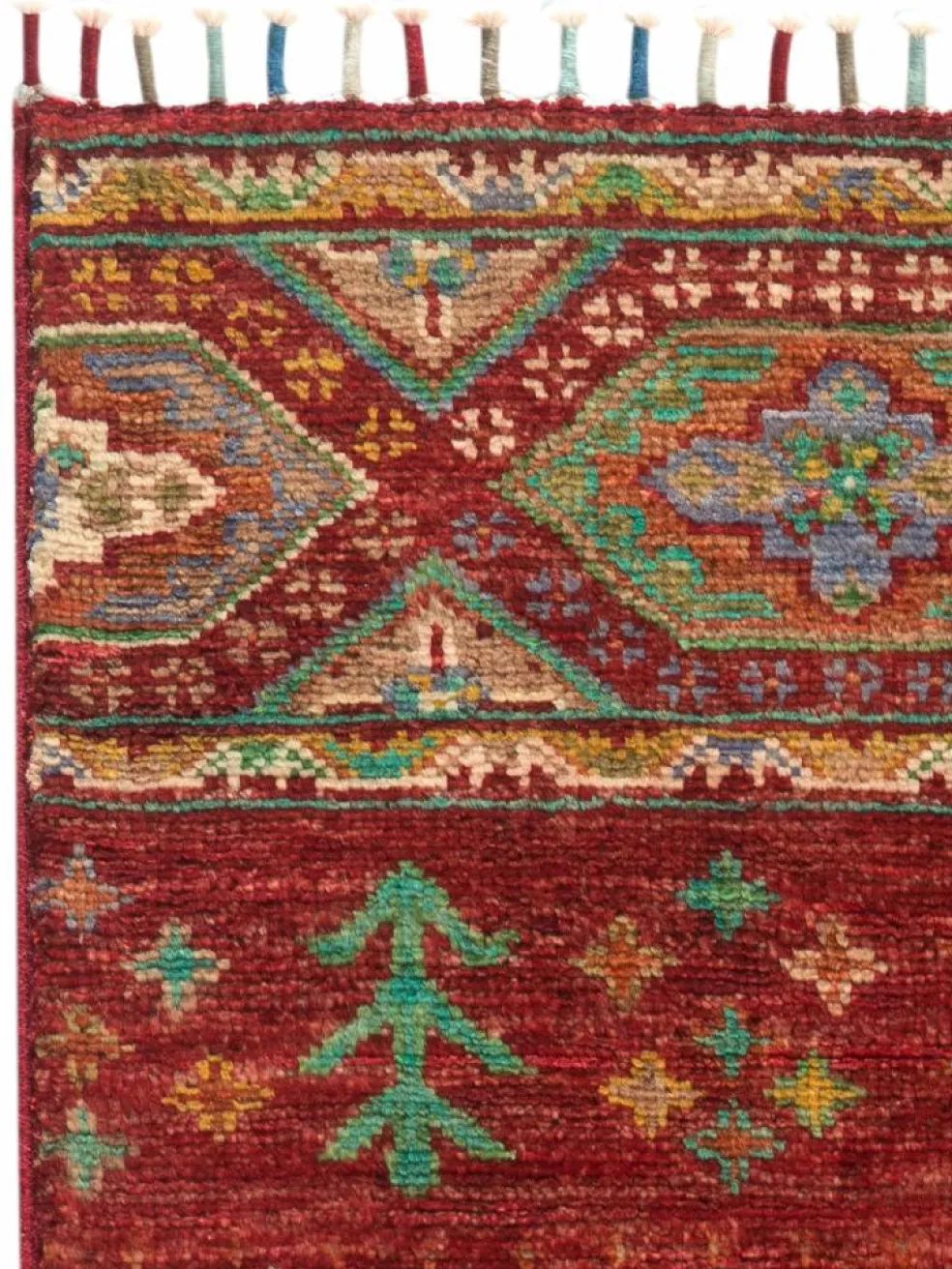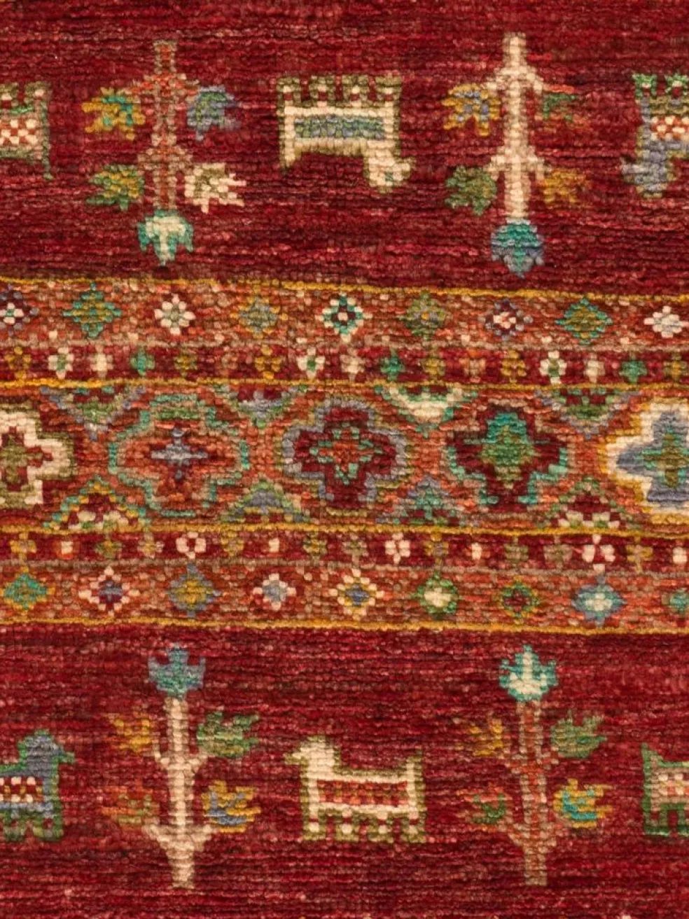-Muster sind bunte Längsstreifen mit vielen verschiedenen Motiven gefüllt. Durch den flachen und festen Flor ist der Teppich unempfindlich gegenüber den Belastungen des Alltags.- DieserOrientteppich
