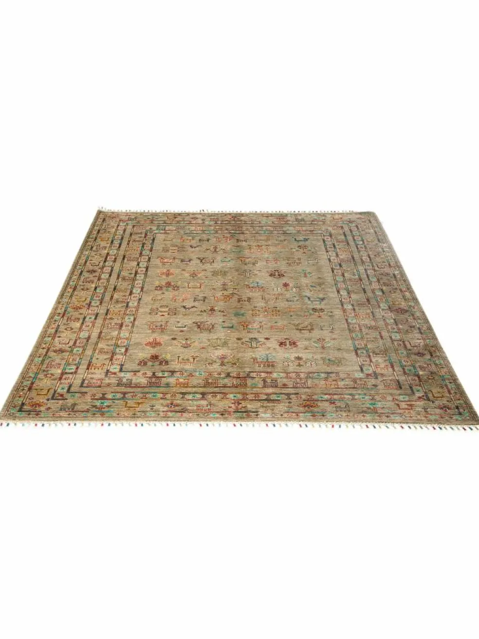 -Muster sind bunte Längsstreifen mit vielen verschiedenen Motiven gefüllt. Durch den flachen und festen Flor ist der Teppich unempfindlich gegenüber den Belastungen des Alltags.- Das Besondere an diesemOrientteppich