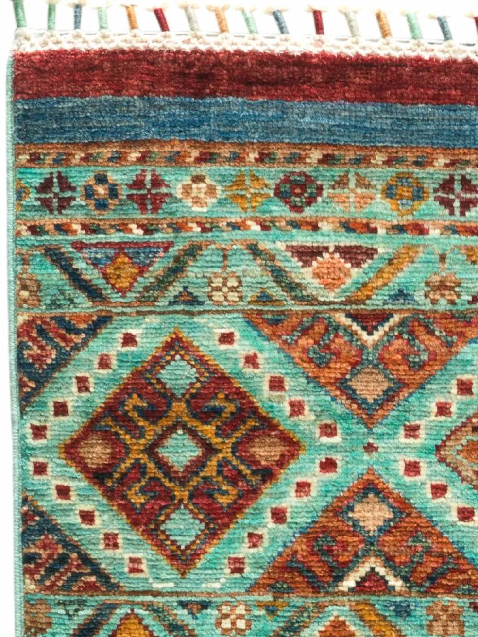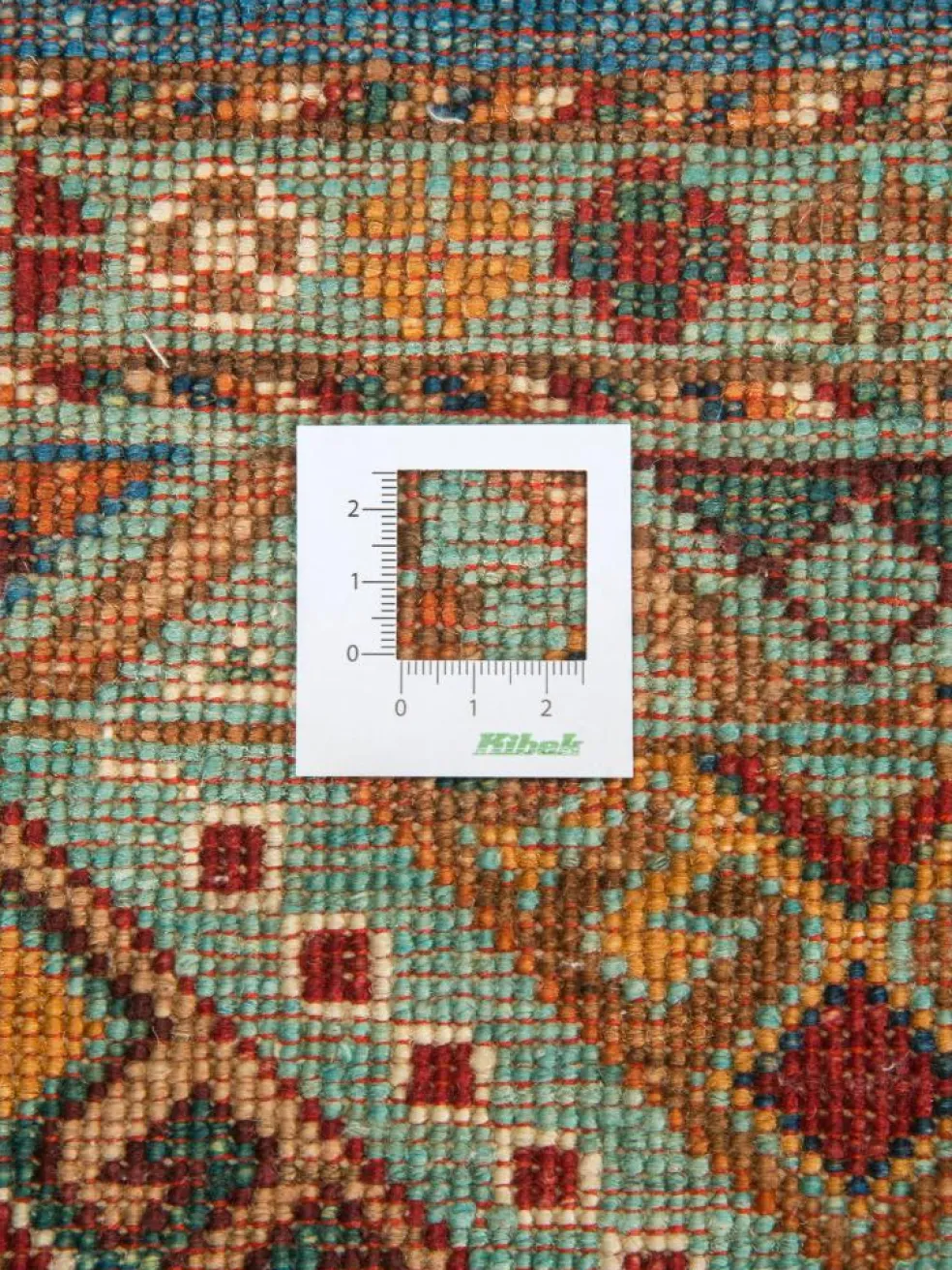 -Muster sind bunte Längsstreifen mit vielen verschiedenen Motiven gefüllt. Durch den flachen und festen Flor ist der Teppich unempfindlich gegenüber den Belastungen des Alltags.- Das Besondere an diesemOrientteppich