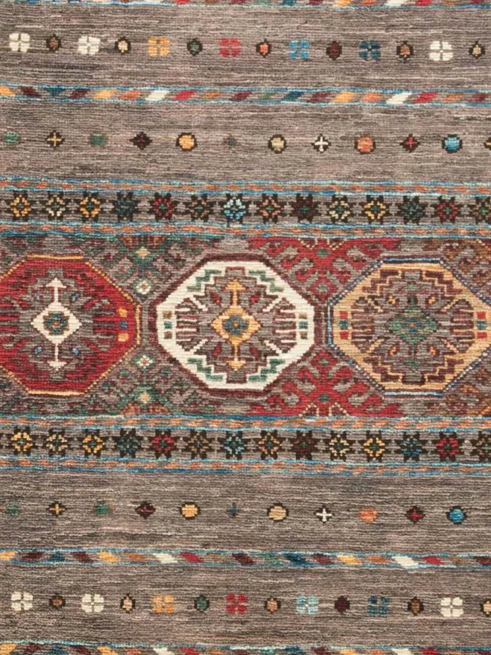Schal sind farbenfrohe Orientteppiche mit Streifen in vielen verschiedenen Variationen. Einige Teppiche sind längs gestreift und andere quer. Vorbild für diese abwechslungsreichen Streifen ist das persischeMoharamati