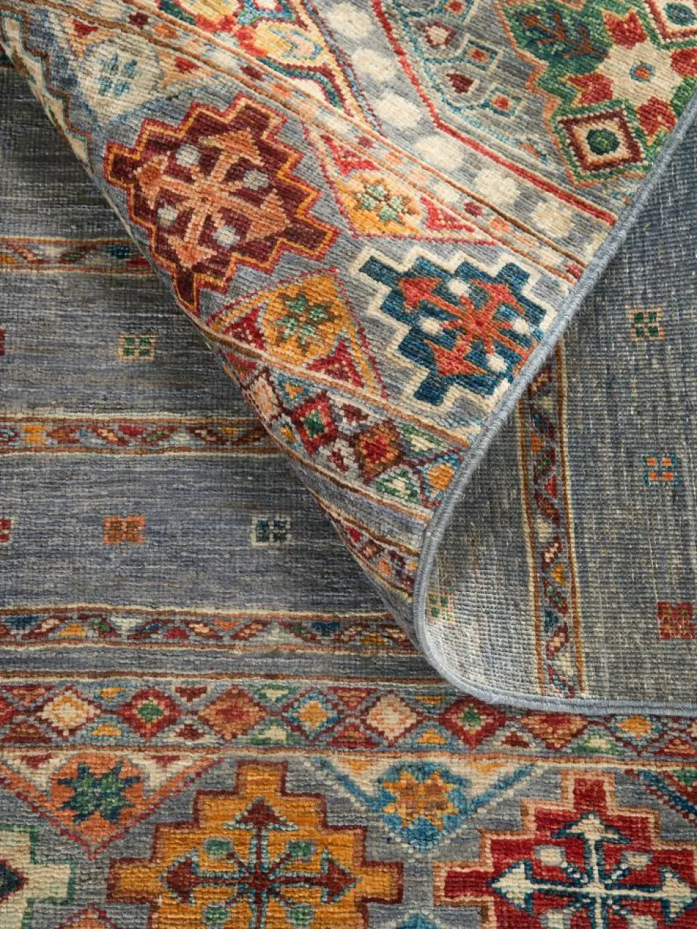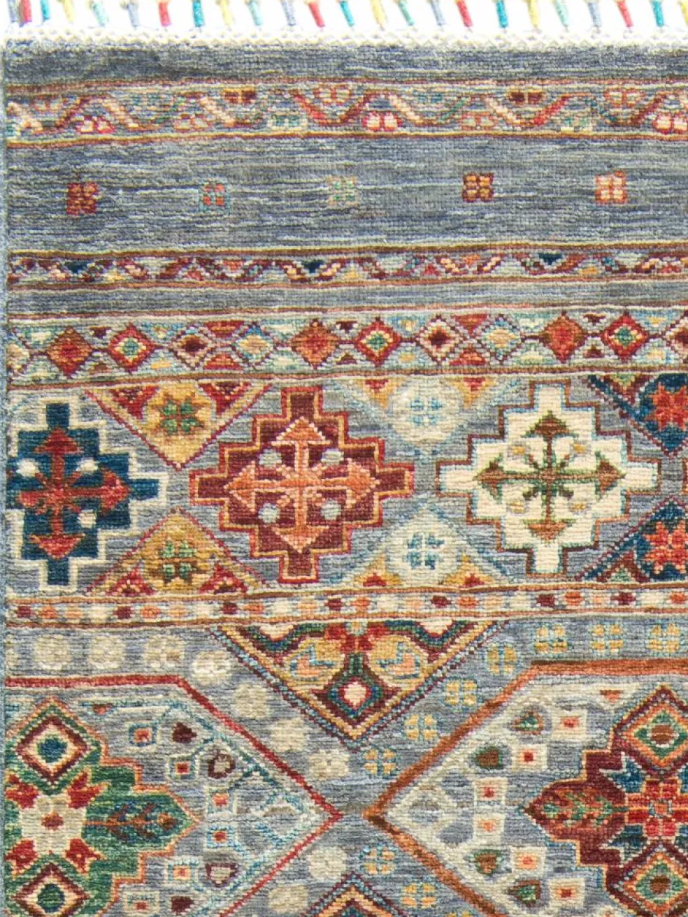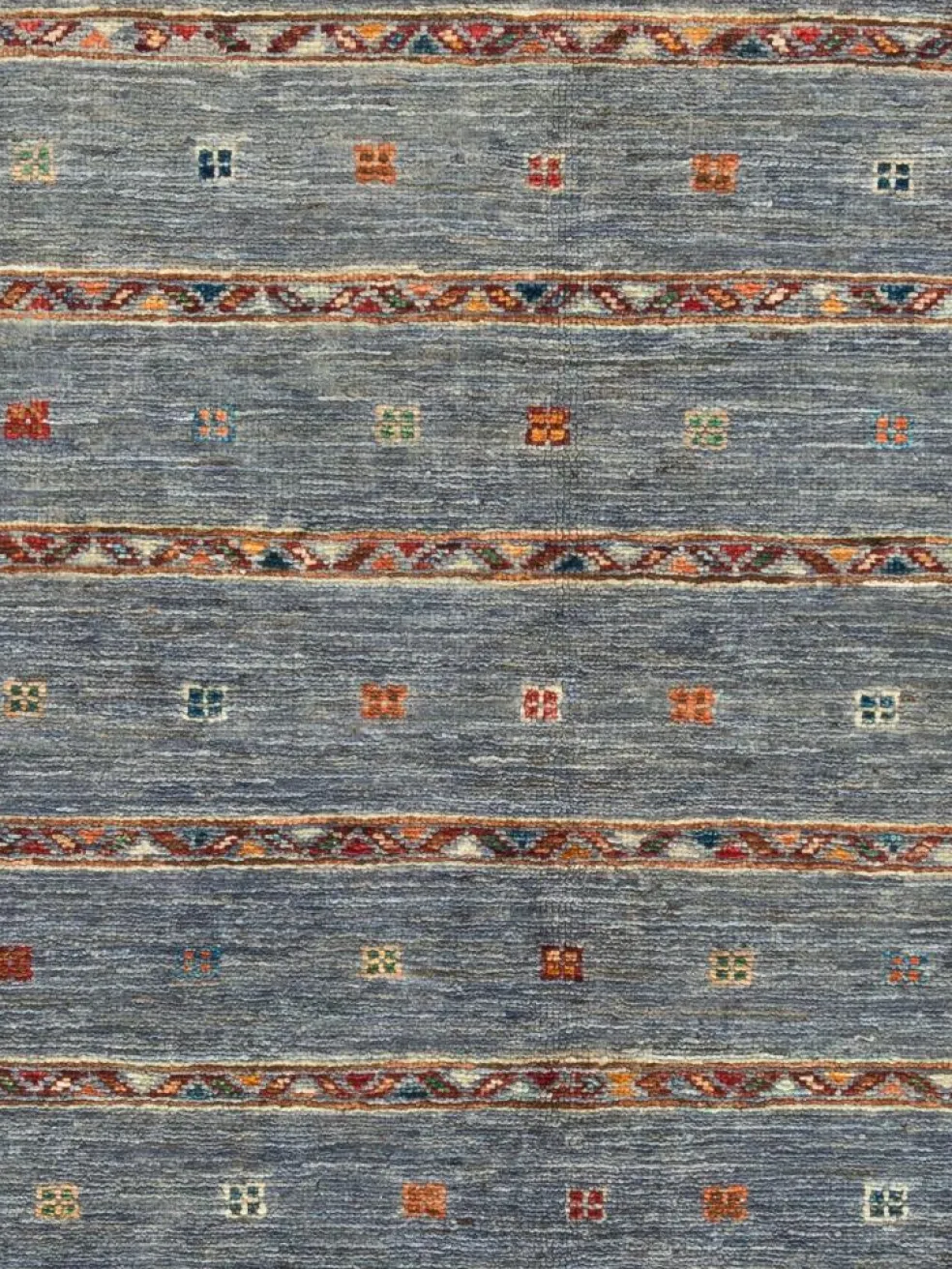 -Muster sind bunte Längsstreifen mit vielen verschiedenen Motiven gefüllt. Durch den flachen und festen Flor ist der Teppich unempfindlich gegenüber den Belastungen des Alltags.- Das Besondere an diesemOrientteppich