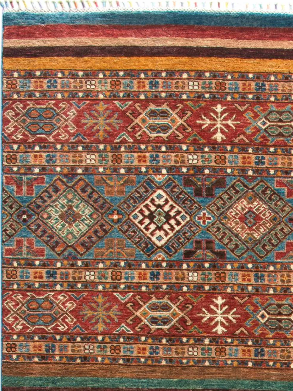 Schal sind farbenfrohe Orientteppiche mit Streifen in vielen verschiedenen Variationen. Einige Teppiche sind längs gestreift und andere quer. Vorbild für diese abwechslungsreichen Streifen ist das persischeMoharamati
