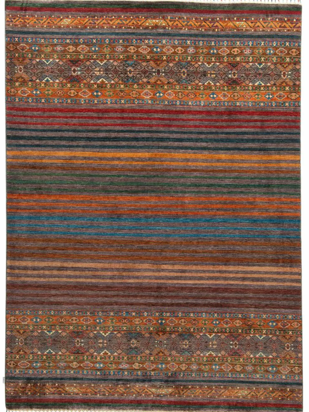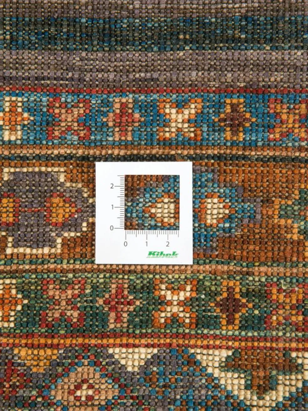 -Muster sind bunte Längsstreifen mit vielen verschiedenen Motiven gefüllt. Durch den flachen und festen Flor ist der Teppich unempfindlich gegenüber den Belastungen des Alltags.- Das Besondere an diesemOrientteppich