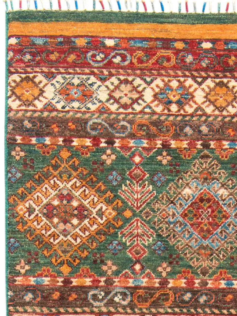 Schal sind farbenfrohe Orientteppiche mit Streifen in vielen verschiedenen Variationen. Einige Teppiche sind längs gestreift und andere quer. Vorbild für diese abwechslungsreichen Streifen ist das persischeMoharamati