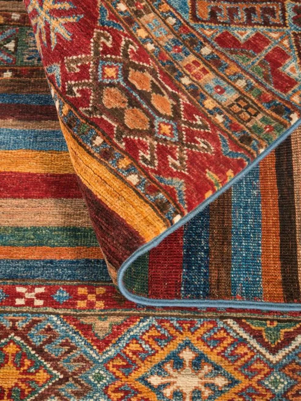 Schal sind farbenfrohe Orientteppiche mit Streifen in vielen verschiedenen Variationen. Einige Teppiche sind längs gestreift und andere quer. Vorbild für diese abwechslungsreichen Streifen ist das persischeMoharamati