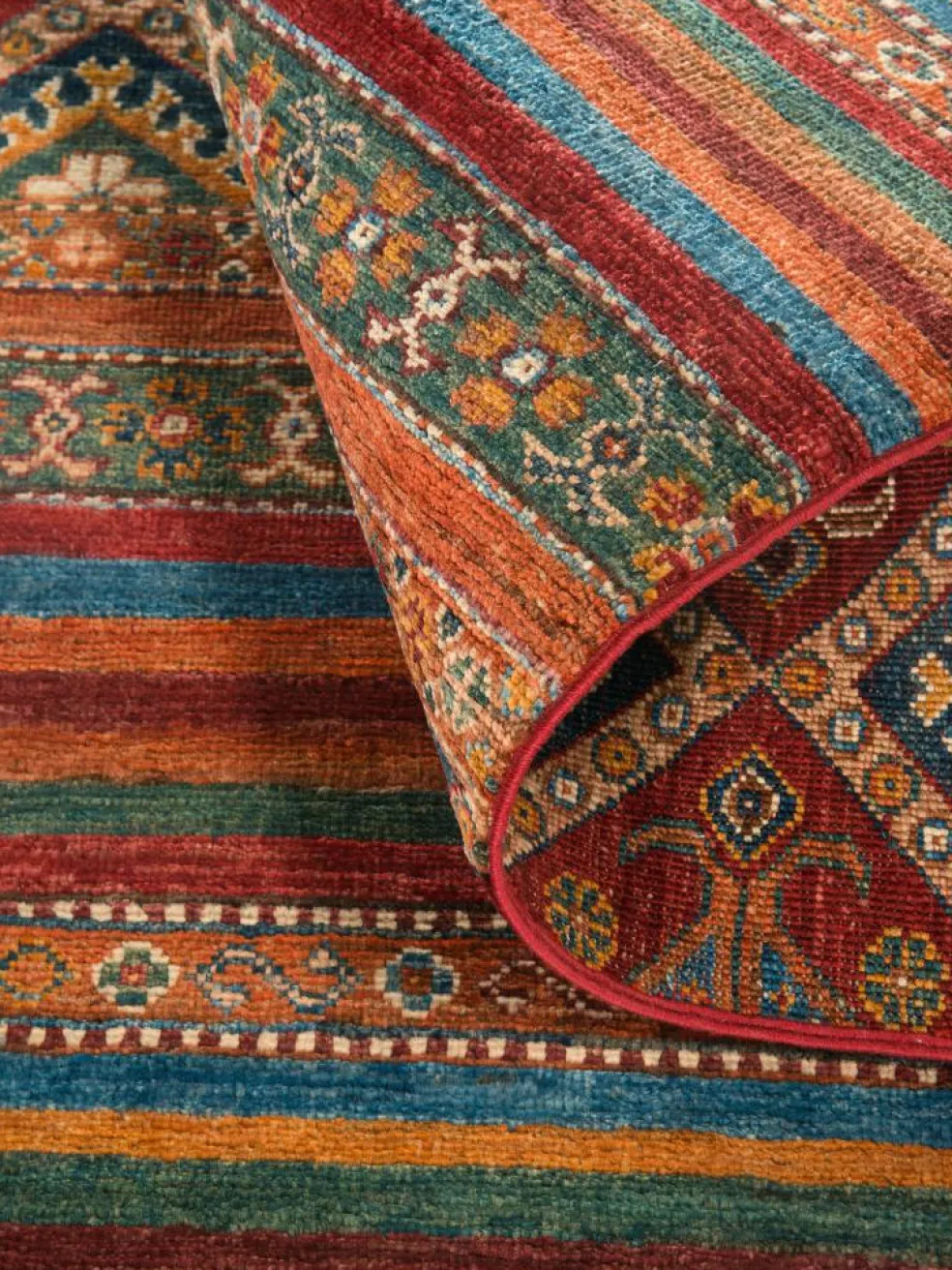 Schal sind farbenfrohe Orientteppiche mit Streifen in vielen verschiedenen Variationen. Einige Teppiche sind längs gestreift und andere quer. Vorbild für diese abwechslungsreichen Streifen ist das persischeMoharamati
