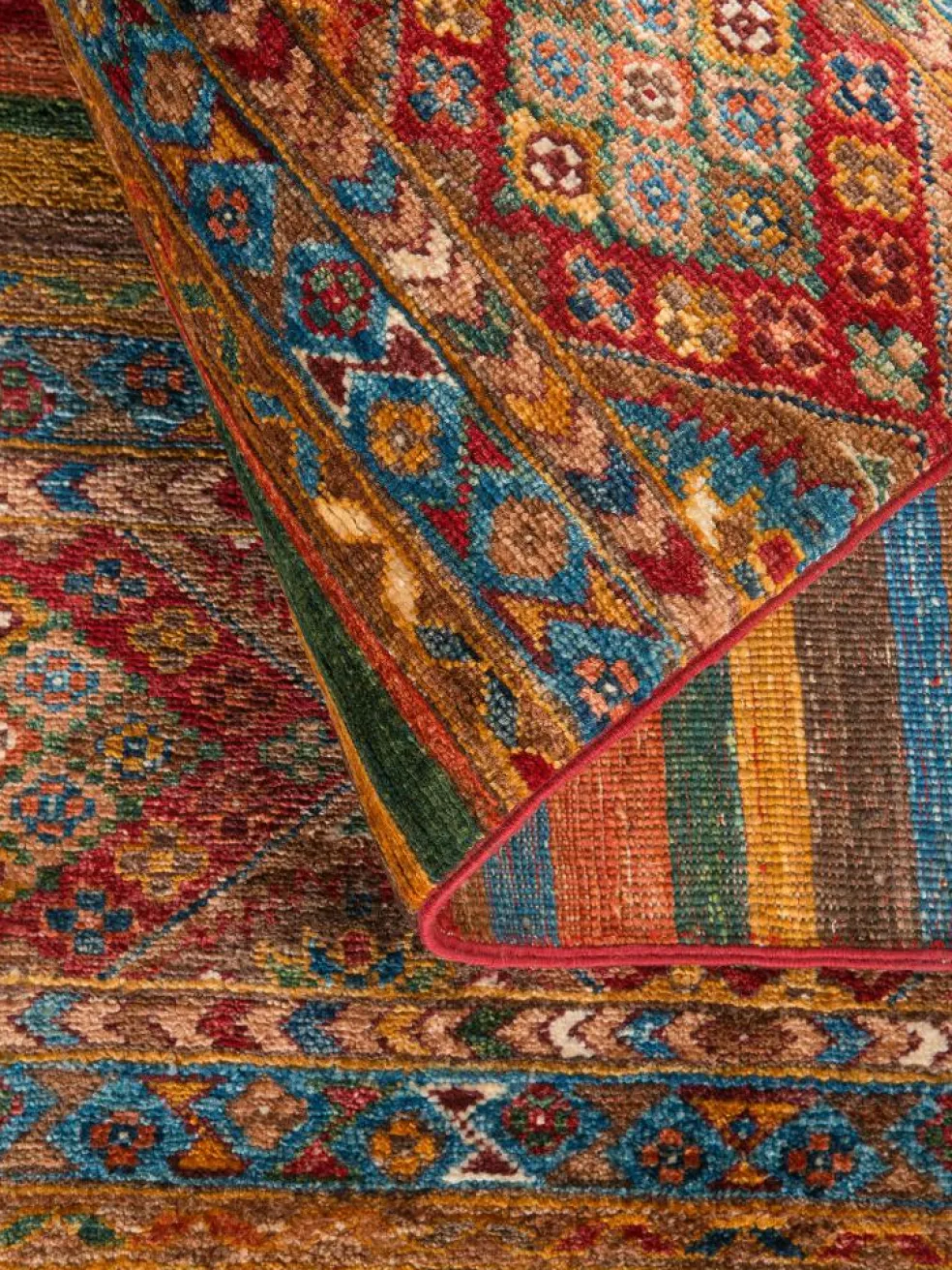 Schal sind farbenfrohe Orientteppiche mit Streifen in vielen verschiedenen Variationen. Einige Teppiche sind längs gestreift und andere quer. Vorbild für diese abwechslungsreichen Streifen ist das persischeMoharamati