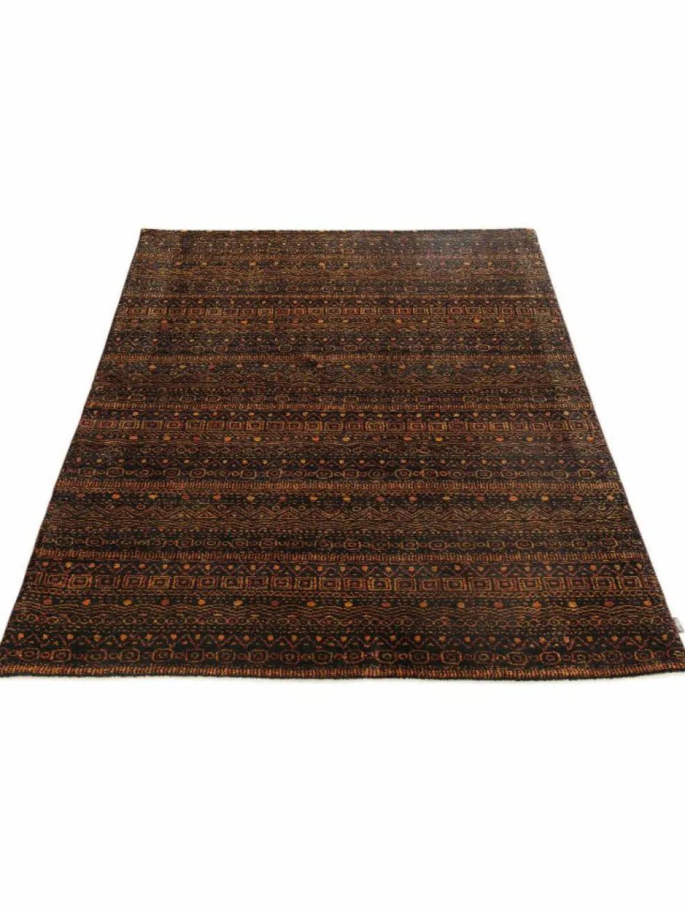 ist eine ungewöhnliche moderne Variation des traditionellen persichen Gabbehs. Er ist kürzer im Flor und feiner geknüpft. Es gibt zahllose Neukreationen in individuellen und einzigartigen Farben und Mustern.| Gesamthöhe: | ca. 10 mm |