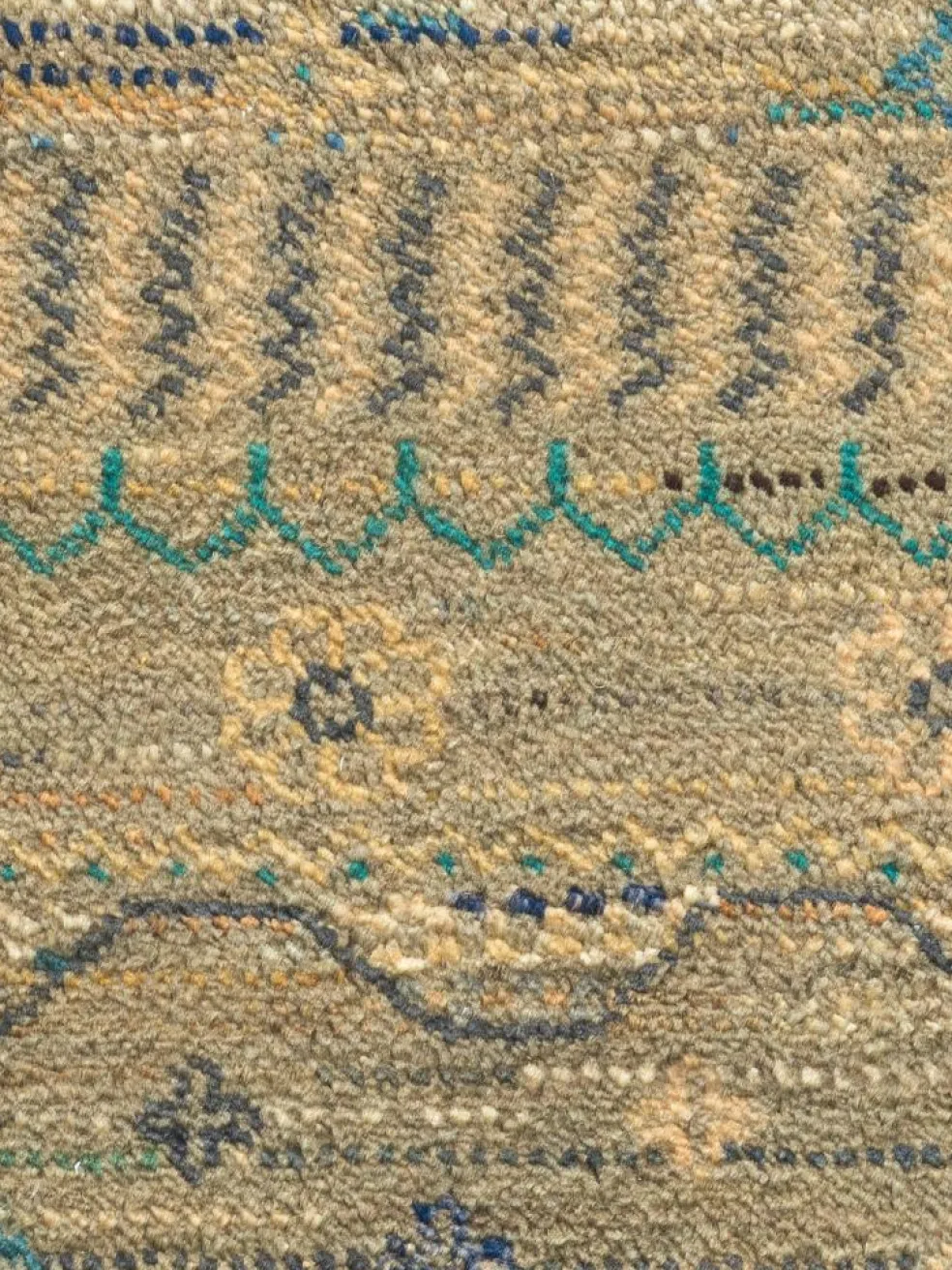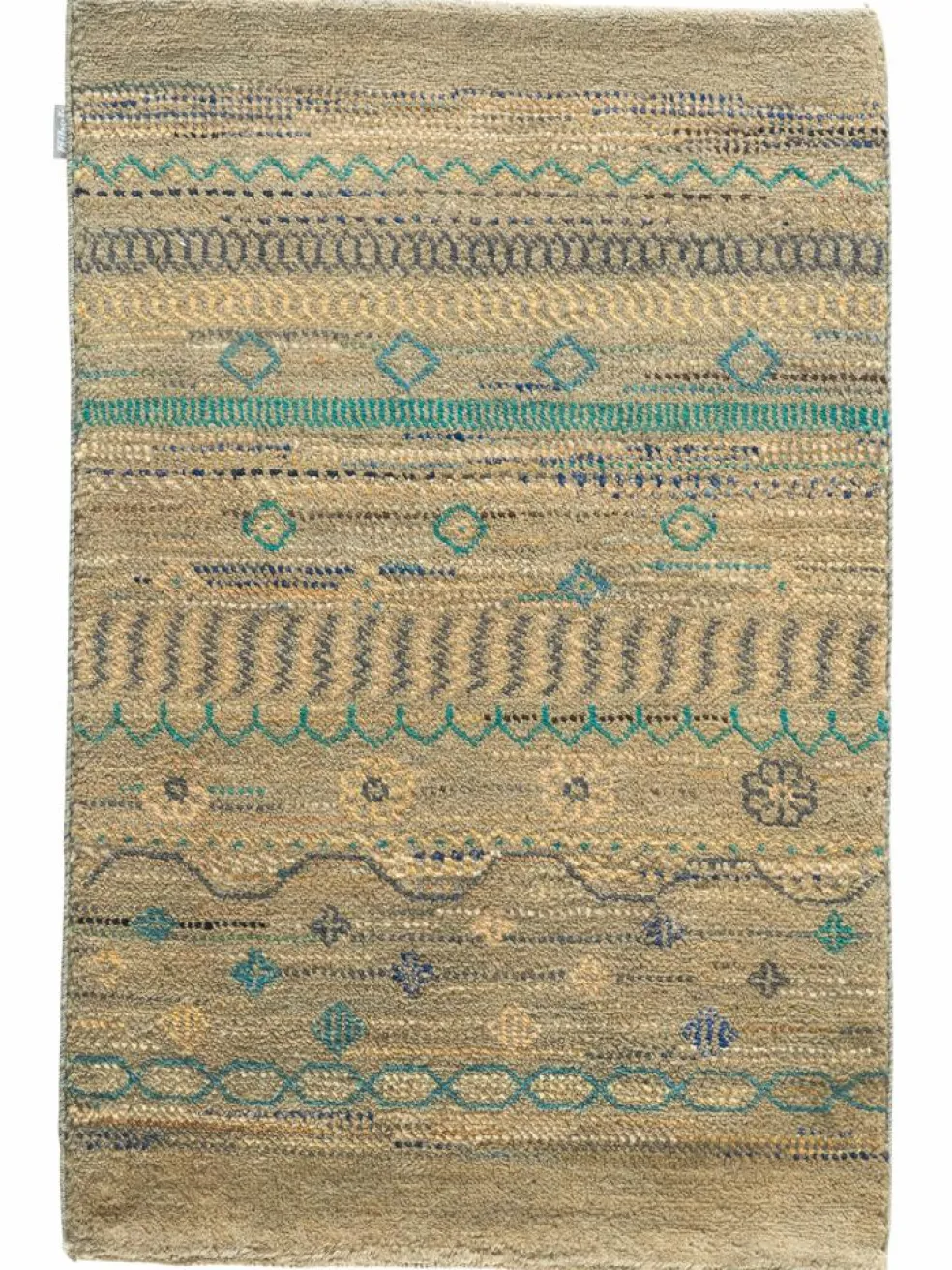 ist eine ungewöhnliche moderne Variation des traditionellen persichen Gabbehs. Er ist kürzer im Flor und feiner geknüpft. Es gibt zahllose Neukreationen in individuellen und einzigartigen Farben und Mustern.| Gesamthöhe: | ca. 7 mm |